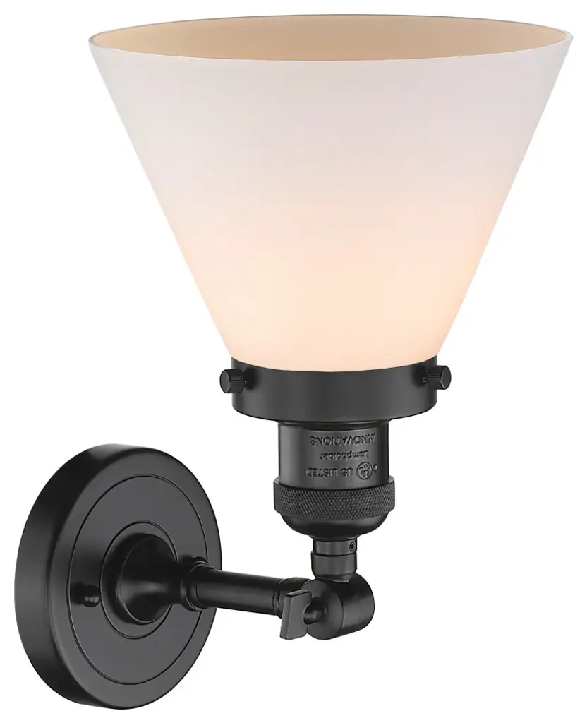 Large Cone 1-Light Sconce, Matte White Cased Glass, Oil Rubbed Bronze