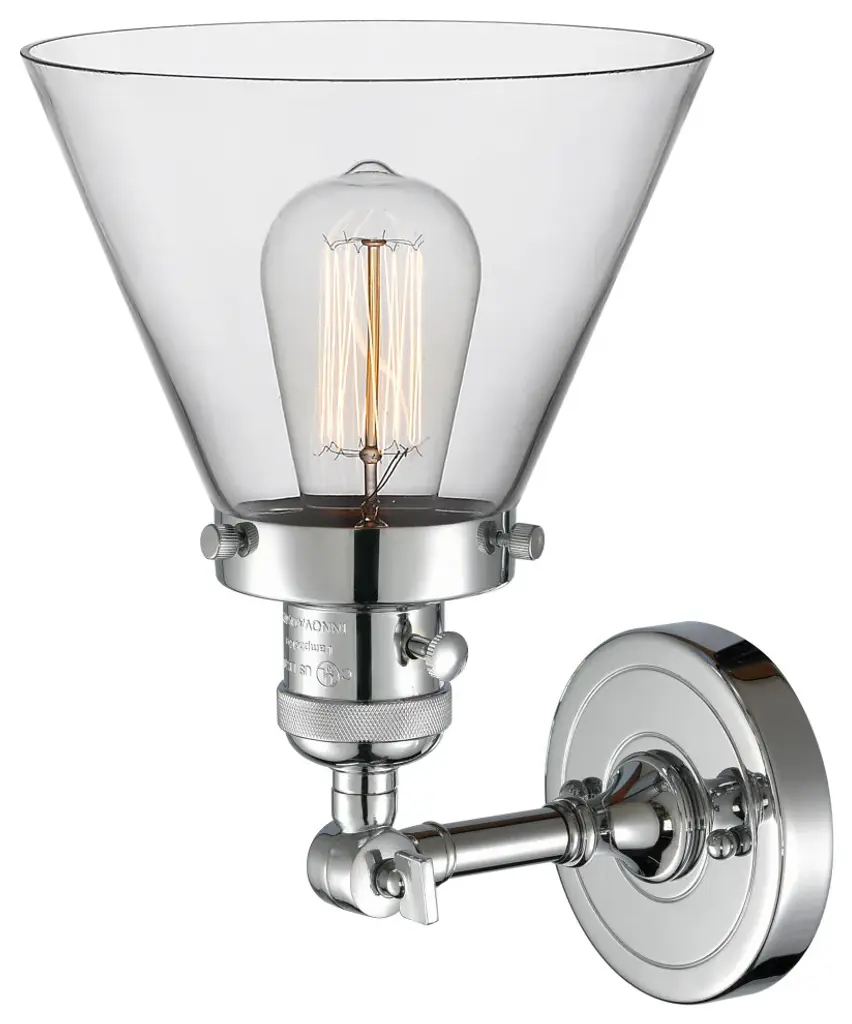 Large Cone 1-Light Sconce, Polished Chrome, Glass: Clear