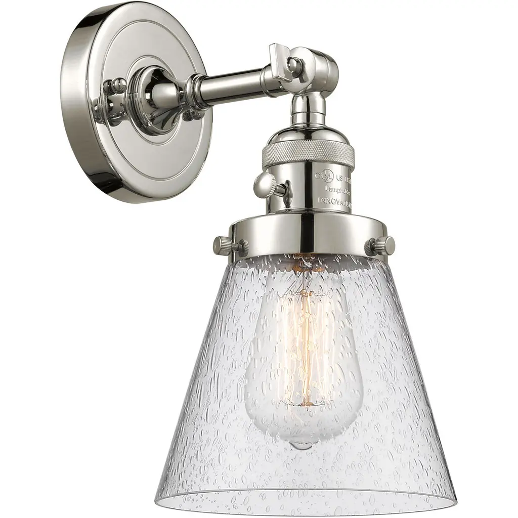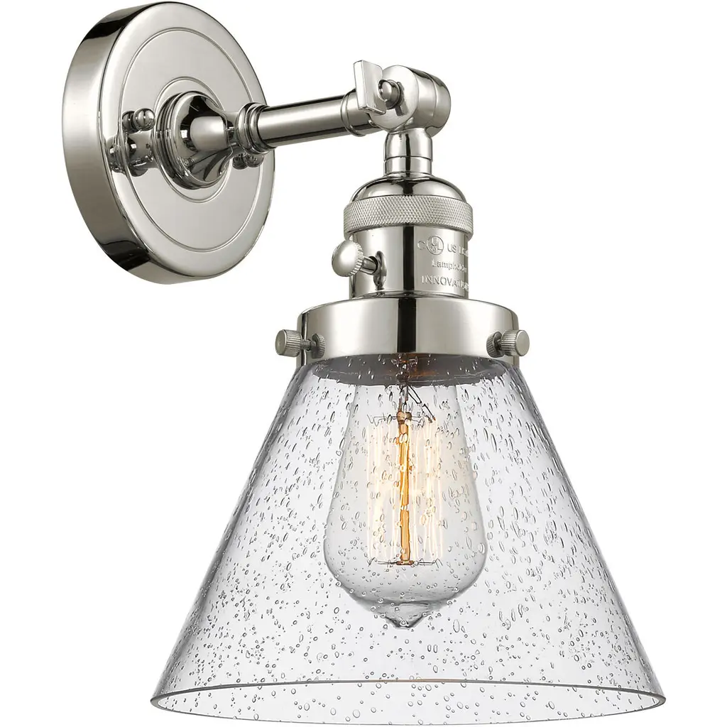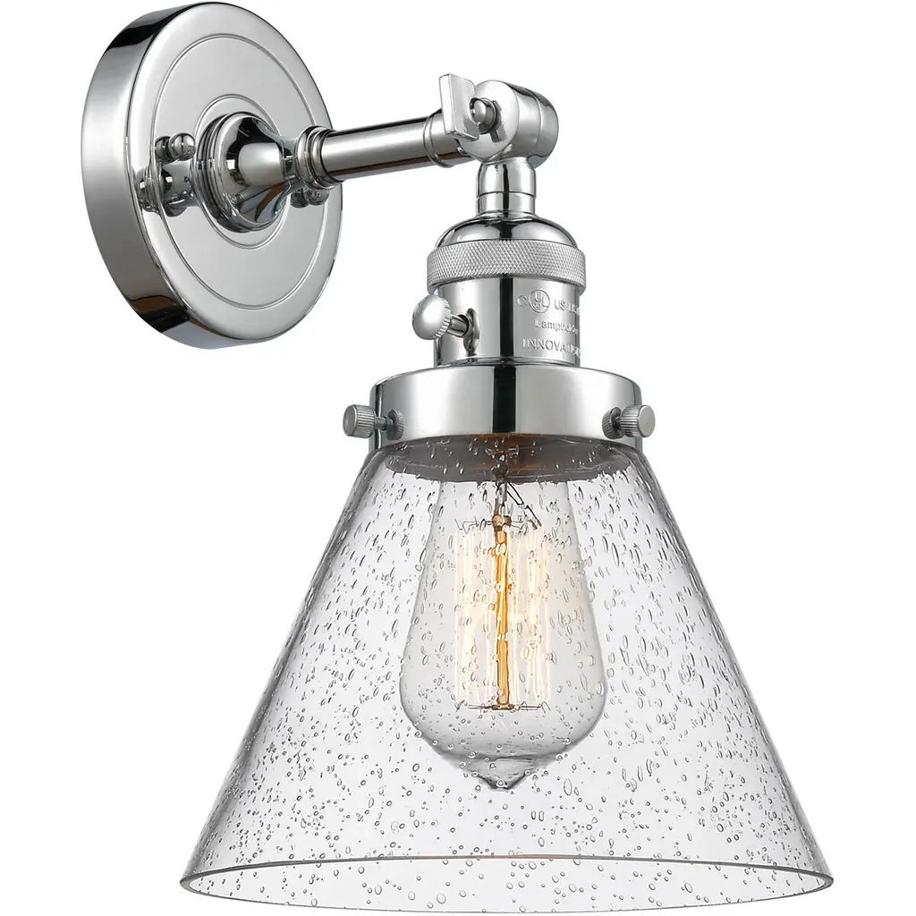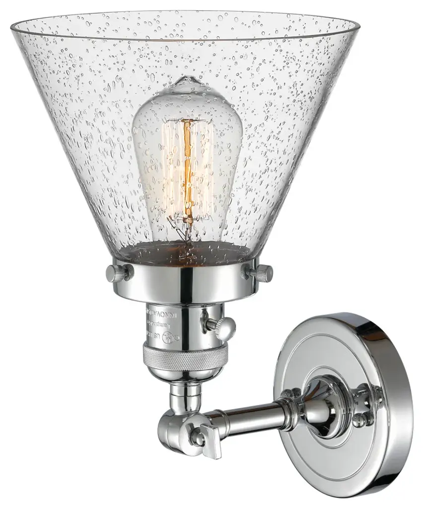 Large Cone 1-Light Sconce, Polished Chrome, Glass: Seedy