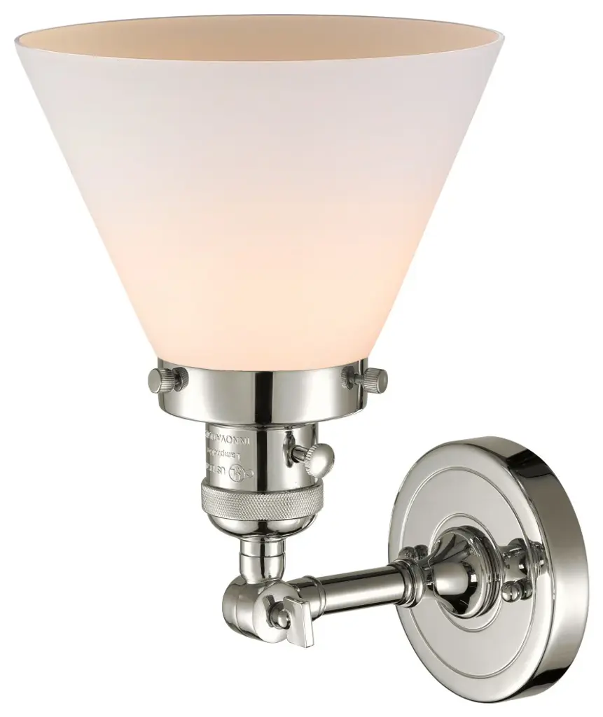 Large Cone 1-Light Sconce, Polished Nickel, Glass: Matte White Cased