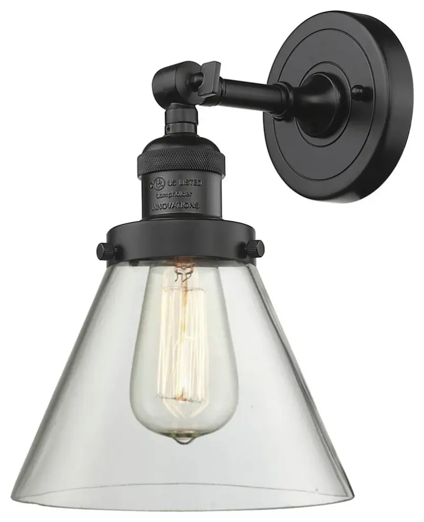 Large Cone 1-Light Sconce, Smoked Glass, Matte Black