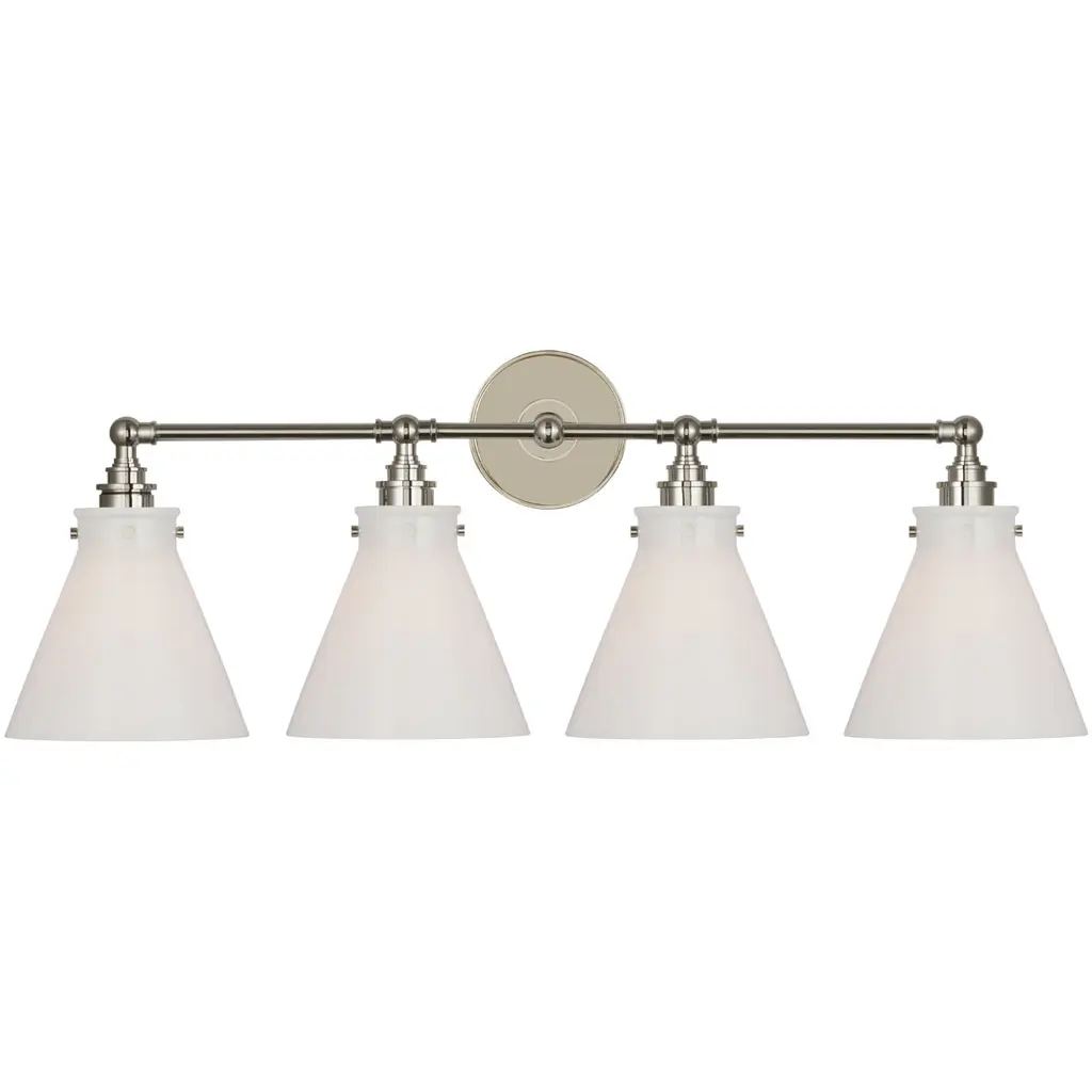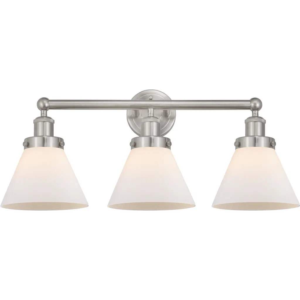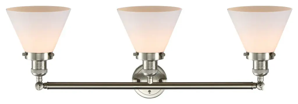 Large Cone 3-Light Bath Fixture, Matte White Cased Glass, Satin Brush Nickel