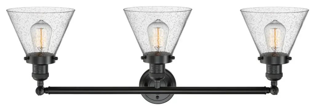 Large Cone 3-Light Bath Fixture, Seedy Glass, Oil Rubbed Bronze