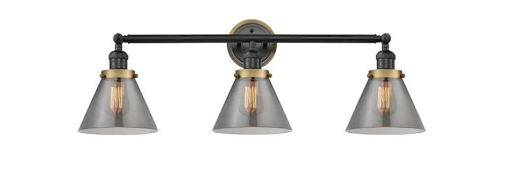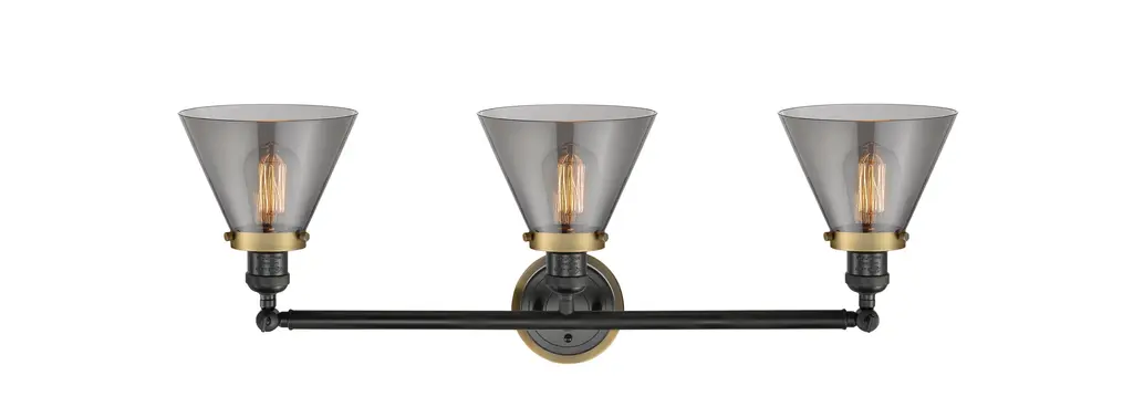 Large Cone 3 Light Mixed Metals Bath Vanity Light, Matte Black, Plated Smoke