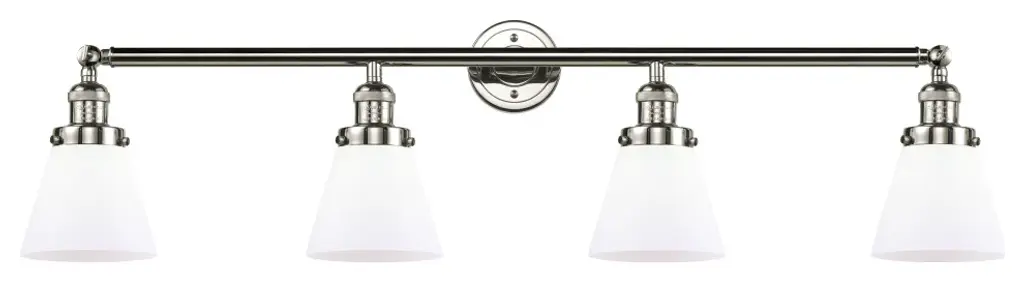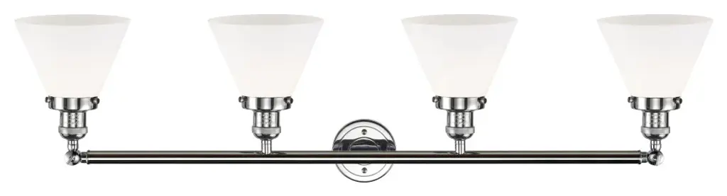 Large Cone 4-Light Bath Fixture, Matt White Cased Glass, Polished Chrome