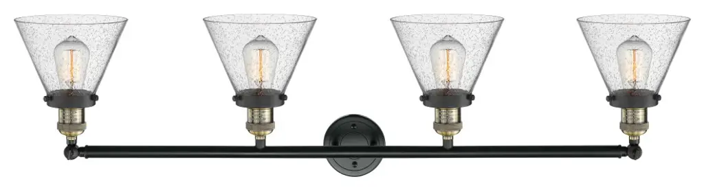 Large Cone 4-Light Bath Fixture, Seedy Glass, Black Antique Brass