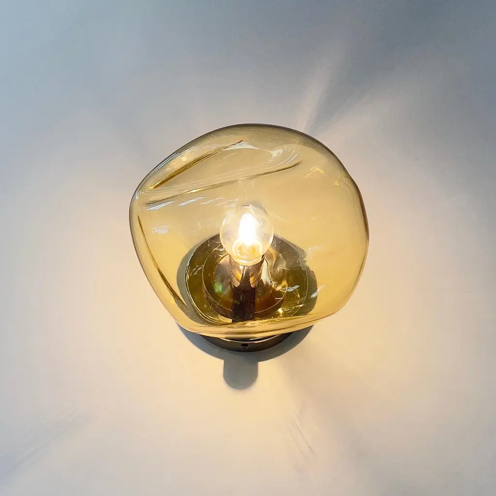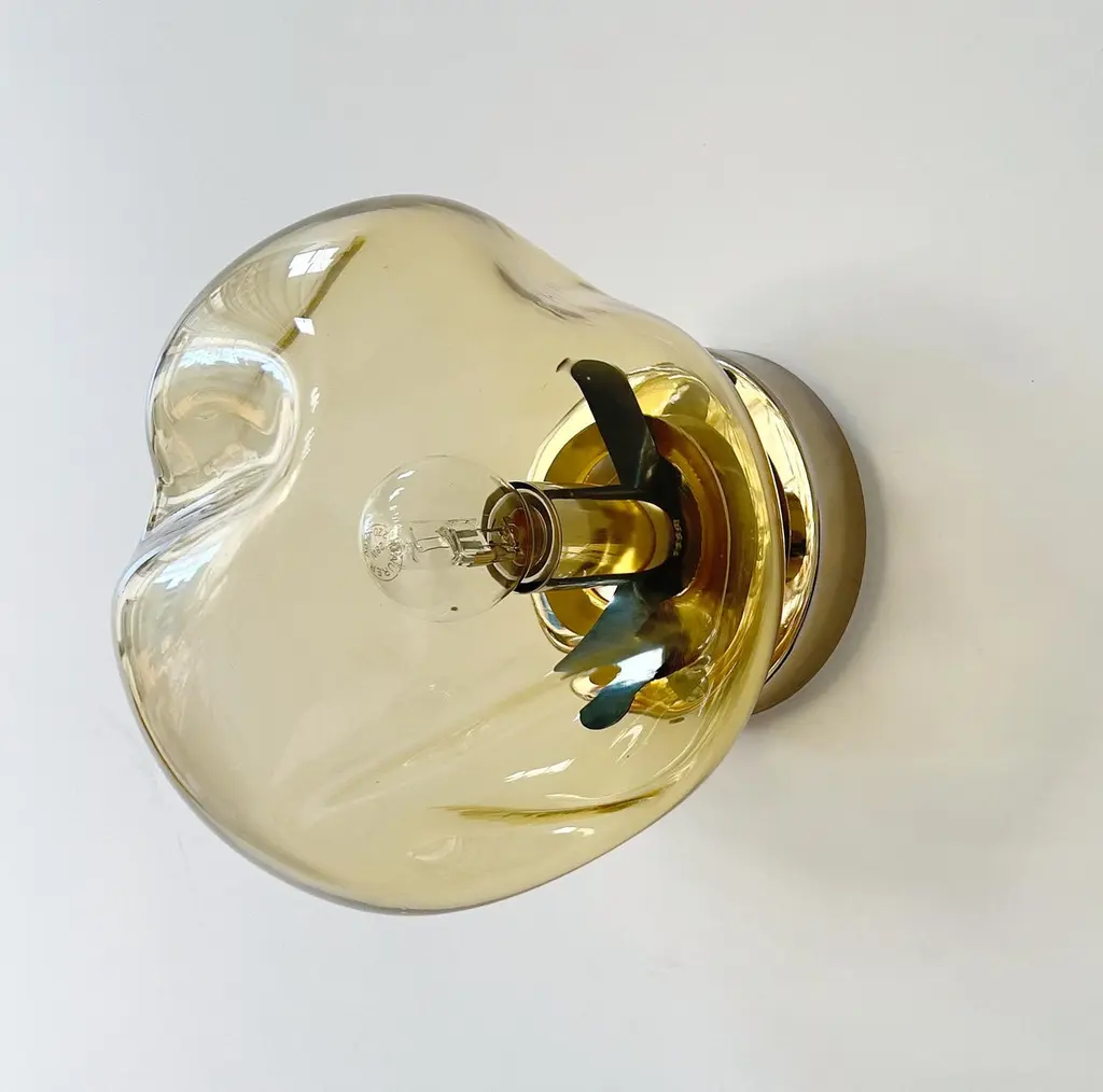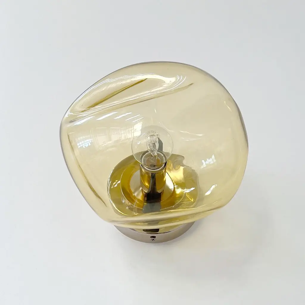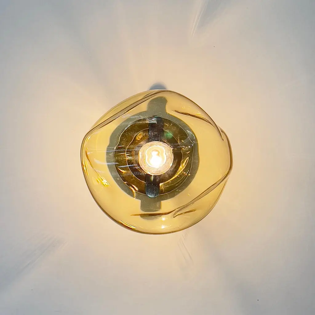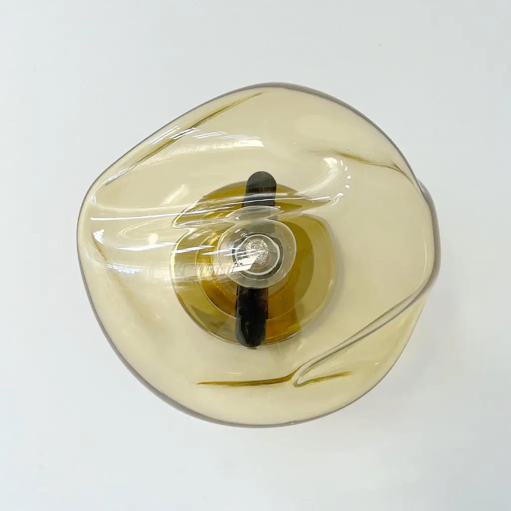 Italian modern wall light or flush mount with a large amber warped Murano glass shade mounted on polished nickel finish metal frame, designed by Fabio Bergomi for Fabio Ltd, made in Italy1 light / E12 or E14 type / max 40WMeasures: Height 7 inches, width 8 inches, depth 9 inchesOrder only / This item ships from ItalyPlease inquire for custom options / pricing / current lead timesOrder Reference #: FABIOLTD W618