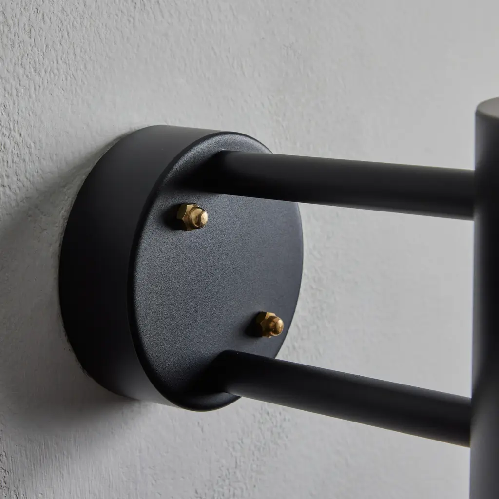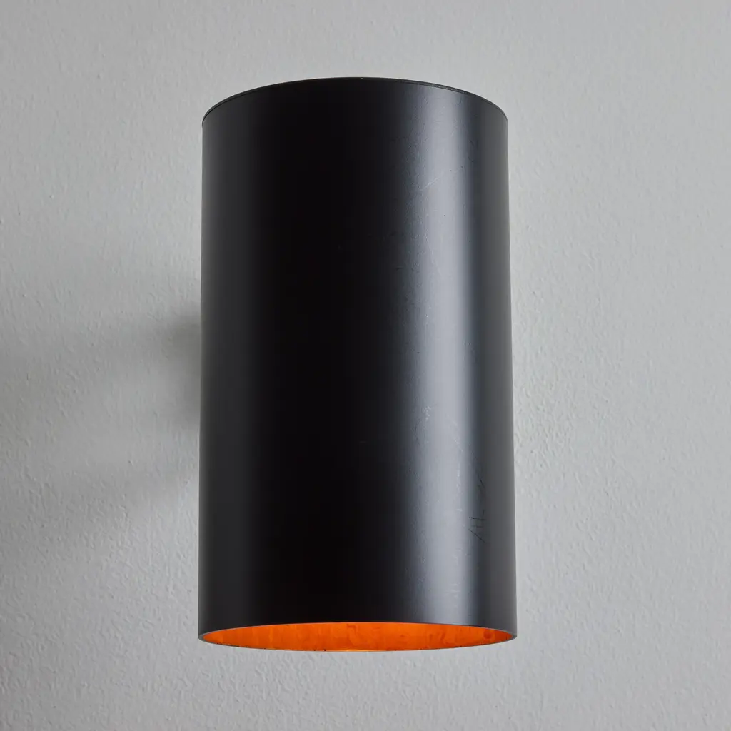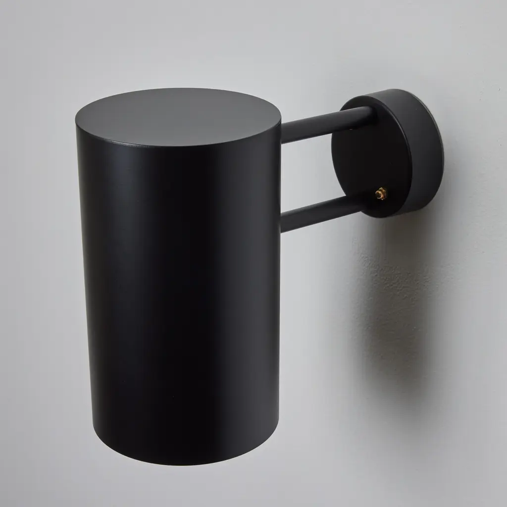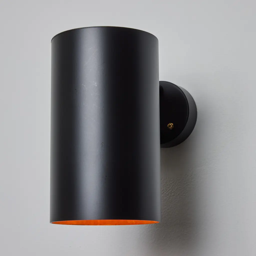 Large Hans-Agne Jakobsson C 627 'Rulle' outdoor sconces in black - a pair. An exclusive made for U.S. and UL listed authorized re-edition of the classic Swedish design executed in black painted metal with a raw metal interior. An incredibly refined design that is quintessentially Scandinavian. Available in raw brass, raw copper, verdigris, darkly patinated, dark brown patinated, and white or black painted metal. Also available in smaller Size. This listing is for the large black painted variant. Price is per pair. Available in unlimited quantities in choice of raw brass, raw copper, verdigris, darkly patinated verdigris, dark brown patinated, and white or black painted metal. Several raw copper & brass lamps in-stock and ready to quick ship. Patinated and painted variants are made to order in approximately 2-3 weeks, but can be expedited for an additional fee. Please note that in-stock inventory availability can change at any time. For time-sensitive orders, kindly inquire prior to purchasing. All sales are final. Authorized re-edition newly produced by Orsjo, Sweden. Professionally wired for US electrical. For indoor or outdoor use. Hardwires to a US junction box. Accommodates a single standard medium base 100W equivalent LED bulb (or 60W incandescent). UL listed. Note that only one representative example is shown in the listing images. Patina of the raw metal interior can vary from lamp to lamp. Made to order.