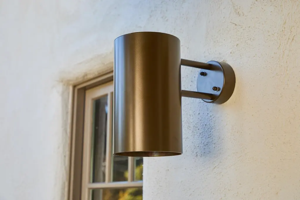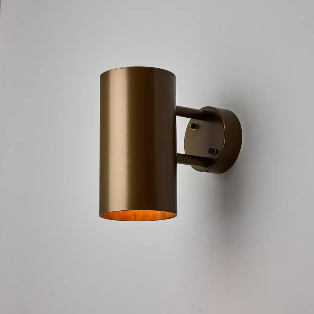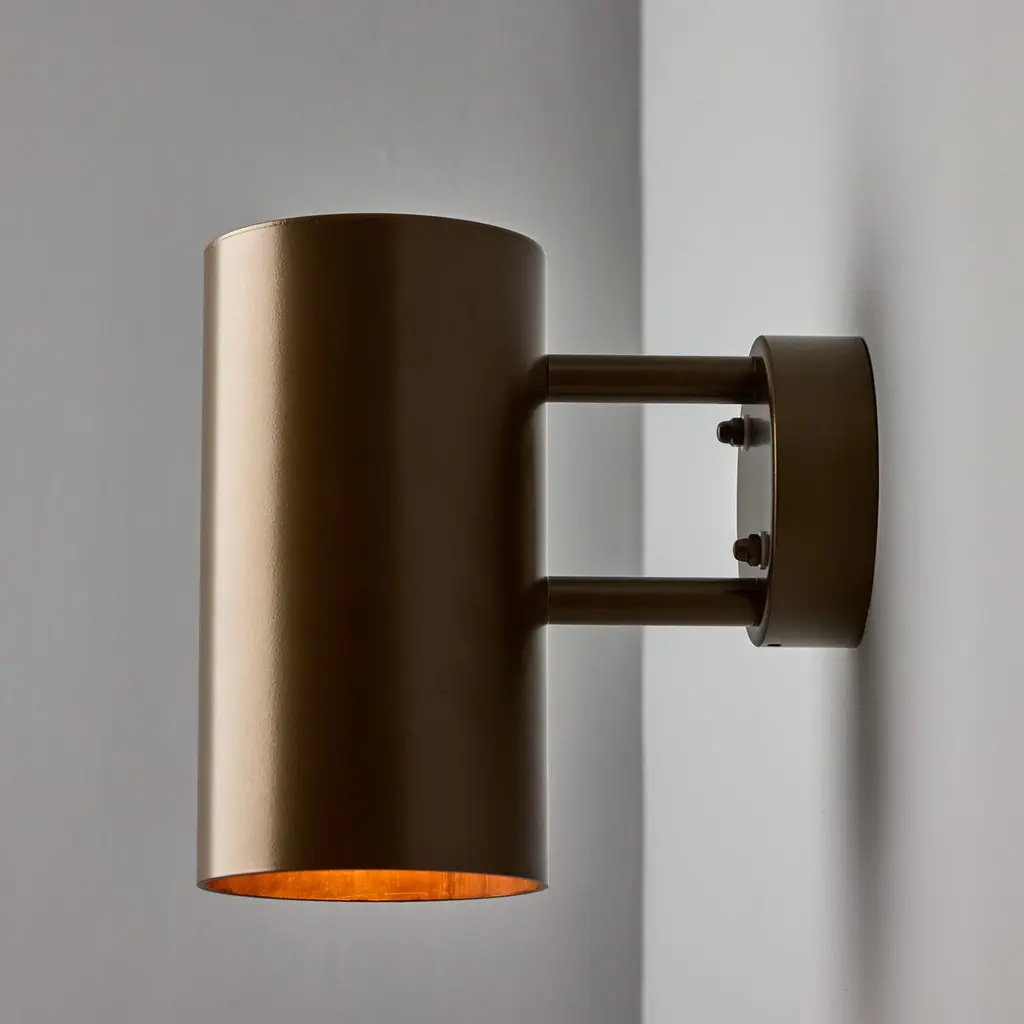 Large Hans-Agne Jakobsson C627 'Rulle' Outdoor Sconce in Painted BrownAn exclusive made for U.S. and UL listed authorized re-edition of the classic Swedish design executed in painted metal with a raw metal interior. An incredibly refined design that is quintessentially Scandinavian. Also available in smaller size. Price is per item. Available in unlimited quantities in choice of raw brass, raw copper, verdigris, darkly patinated verdigris, dark brown patinated, and brown, bronze, silver, steel, white or black painted metal. This listing is for the painted brown variant. Other colors and finishes available in separate listings. Several raw copper & brass lamps in-stock and ready to quick ship. Patinated and painted variants are made to order in approximately 1-2 weeks, but can be expedited for an additional fee. Please note that in-stock inventory availability can change at any time. For time-sensitive orders, kindly inquire prior to purchasing. Authorized re-edition newly produced by Orsjo, Sweden. Professionally wired for US electrical. For indoor or outdoor use. Hardwires to a US junction box. Accommodates a single standard medium base 100W equivalent LED bulb (or 60W incandescent). UL listed.Please note only one representative example of the lamps is featured in the photos. Some variation in the raw metal interior from lamp to lamp.Made to order. All sales are final.