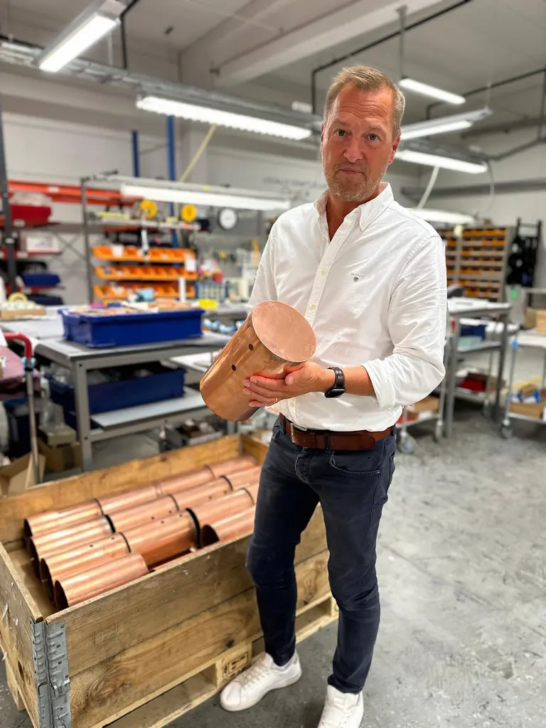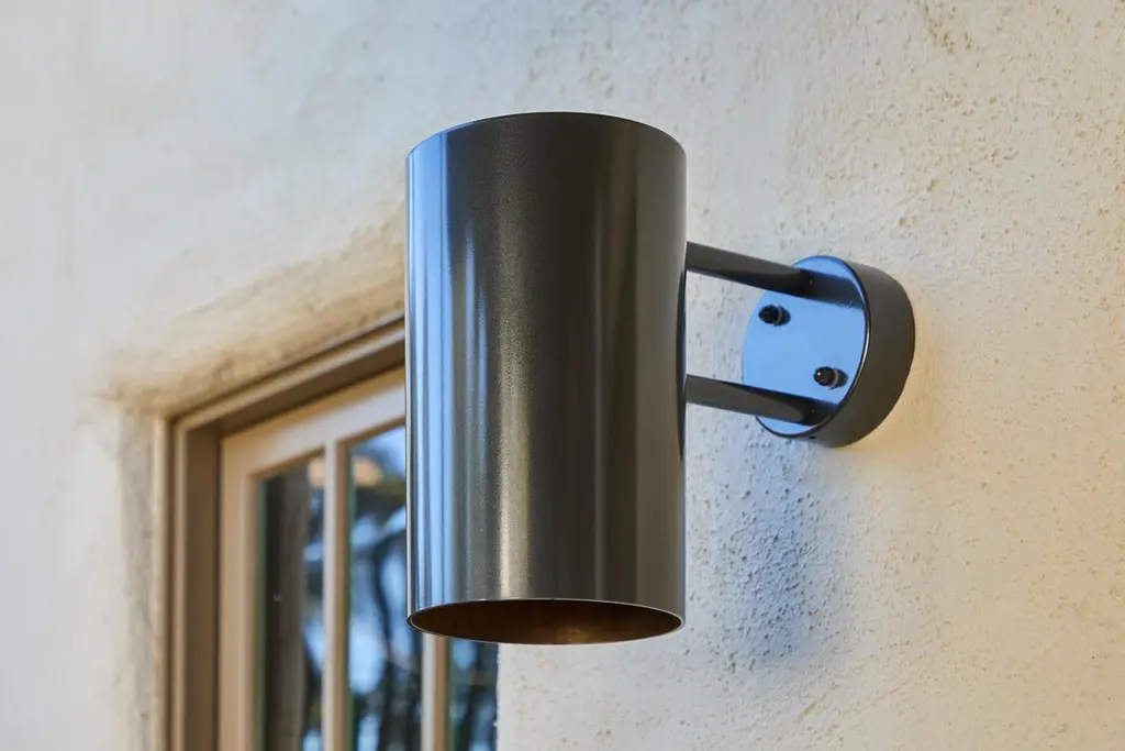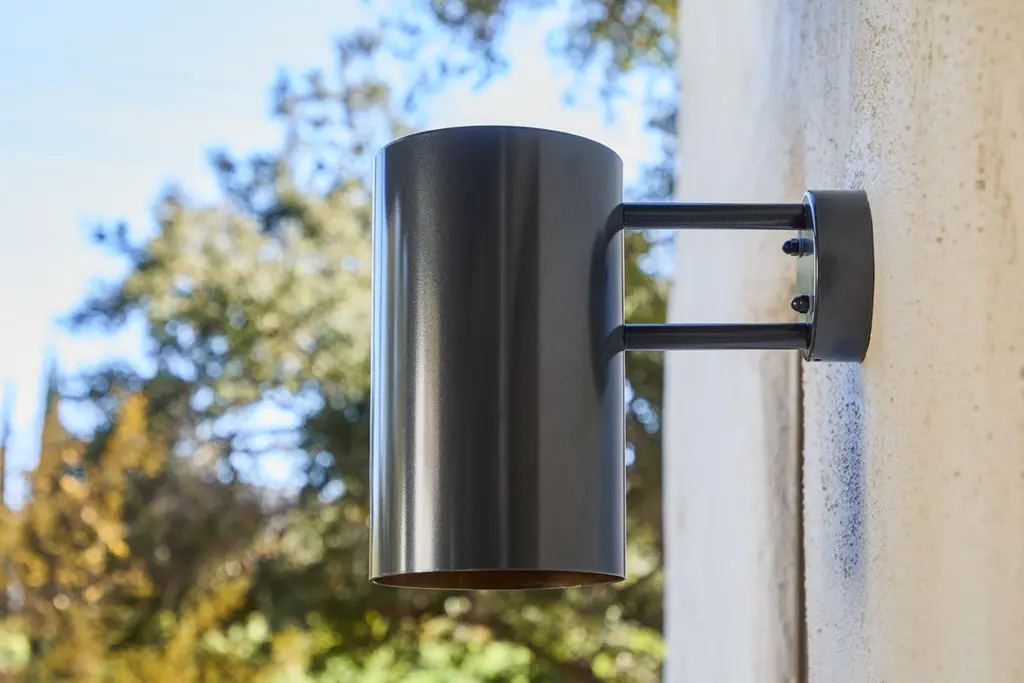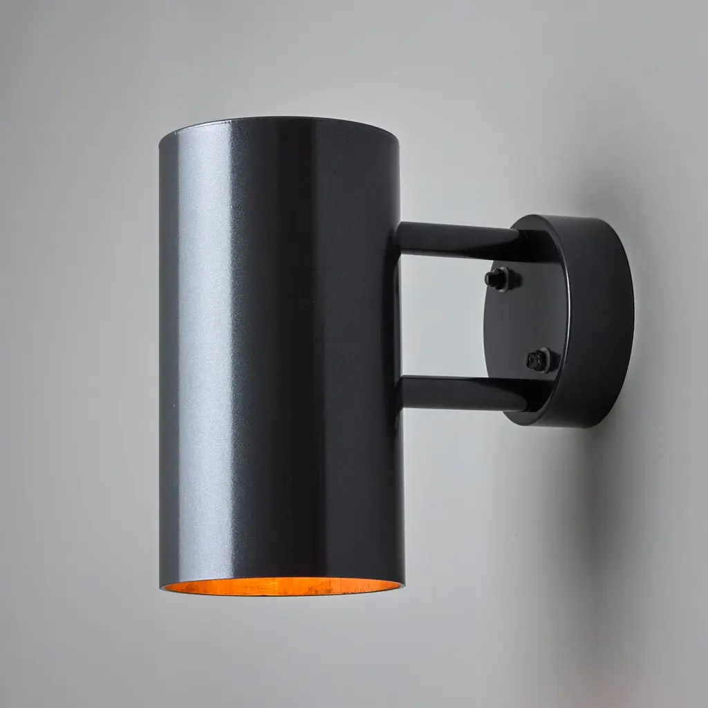 Large Hans-Agne Jakobsson C627 'Rulle' Outdoor Sconce in Painted SteelAn exclusive made for U.S. and UL listed authorized re-edition of the classic Swedish design executed in painted metal with a raw metal interior. An incredibly refined design that is quintessentially Scandinavian. Also available in smaller size. Price is per item. Available in unlimited quantities in choice of raw brass, raw copper, verdigris, darkly patinated verdigris, dark brown patinated, and brown, bronze, silver, steel, white or black painted metal. This listing is for the painted steel variant. Other colors and finishes available in separate listings. Several raw copper & brass lamps in-stock and ready to quick ship. Patinated and painted variants are made to order in approximately 1-2 weeks, but can be expedited for an additional fee. Please note that in-stock inventory availability can change at any time. For time-sensitive orders, kindly inquire prior to purchasing. Authorized re-edition newly produced by Orsjo, Sweden. Professionally wired for US electrical. For indoor or outdoor use. Hardwires to a US junction box. Accommodates a single standard medium base 100W equivalent LED bulb (or 60W incandescent). UL listed.Please note only one representative example of the lamps is featured in the photos. Some variation in the raw metal interior from lamp to lamp.Made to order. All sales are final.