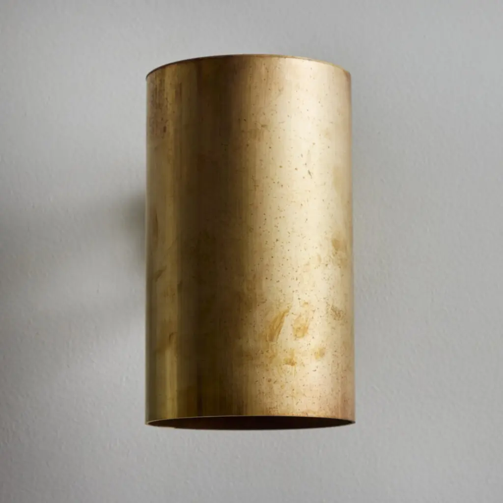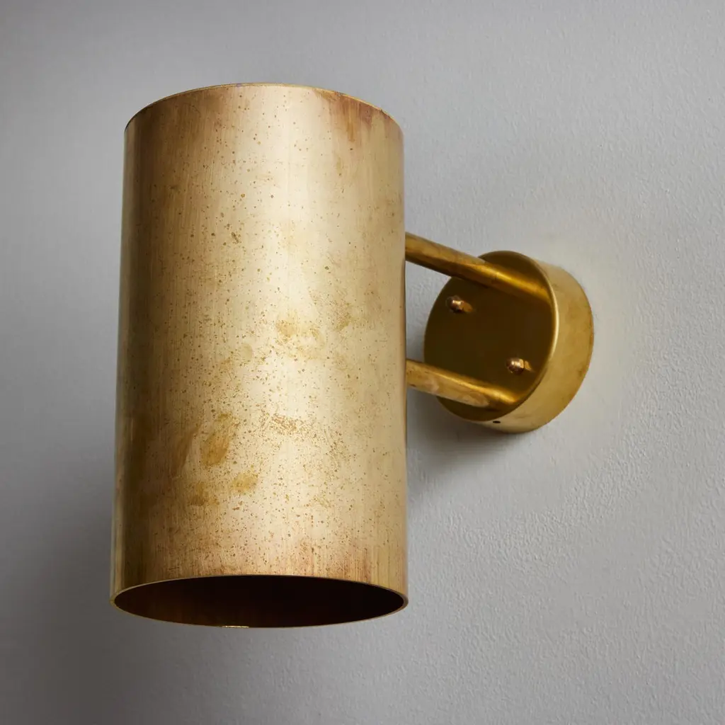 Large Hans-Agne Jakobsson C627 'Rulle' raw brass outdoor sconce. An exclusive made for U.S. and UL listed authorized re-edition of the classic Swedish design executed in raw unlacquered and unpolished brass. An incredibly refined design that is quintessentially Scandinavian. Suitable for both indoor or outdoor use. Also available in smaller size. Price is per item. Available in unlimited quantities in choice of raw brass, raw copper, verdigris, darkly patinated verdigris, dark brown patinated, and white or black painted metal. Several raw copper & brass lamps in-stock and ready to quick ship. Patinated and painted variants are made to order in approximately 2-3 weeks, but can be expedited for an additional fee. Please note that in-stock inventory availability can change at any time. For time-sensitive orders, kindly inquire prior to purchasing. All sales are final.Authorized re-edition newly produced by Orsjo, Sweden. Professionally wired for US electrical. For indoor or outdoor use. Hardwires to a US junction box. Accommodates a single standard medium base 100W equivalent LED bulb (or 60W incandescent). UL listed.Please note only one representative example is featured in the photos. This lamp is fabricated in raw and unlacquered brass that will naturally patinate over time and can already show varied signs of patination through exposure to the elements, handling, storage, etc., which may result in variation and irregularities.Made to order. All sales are final.