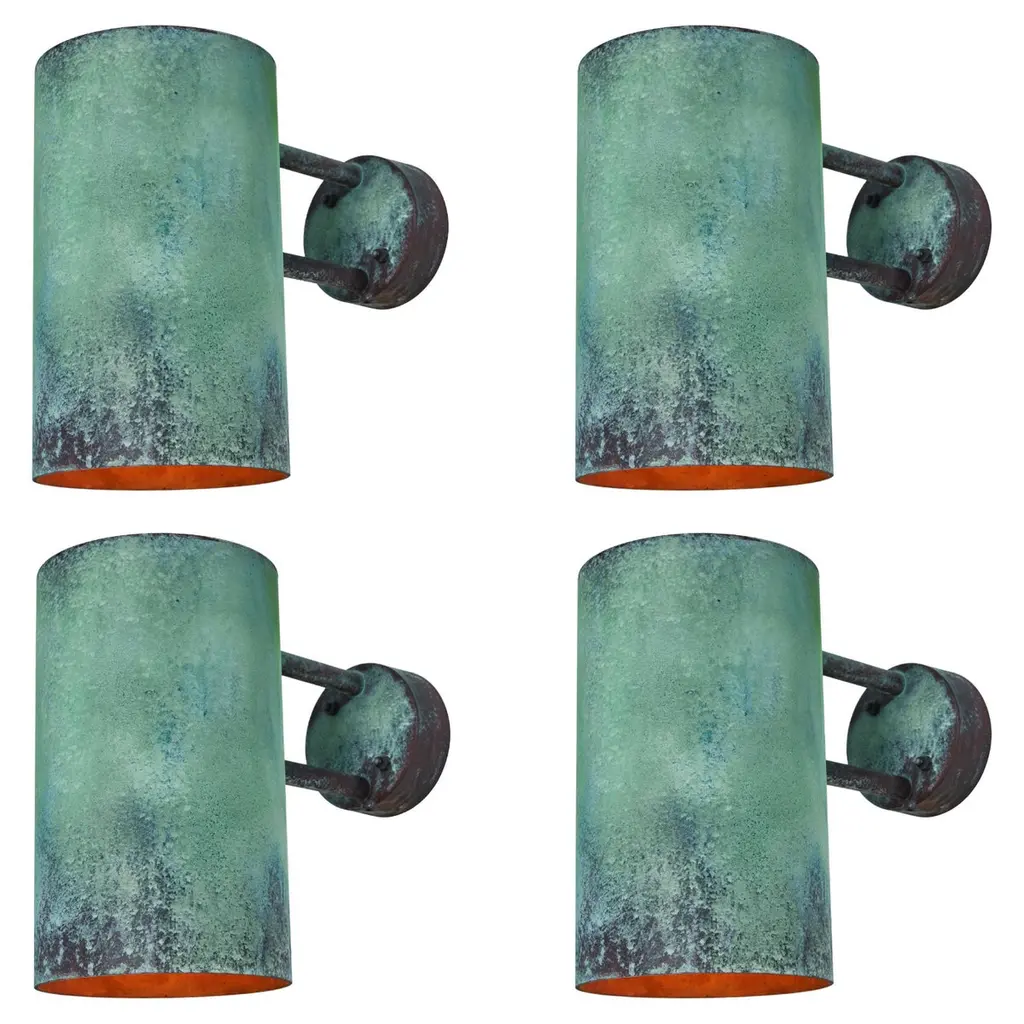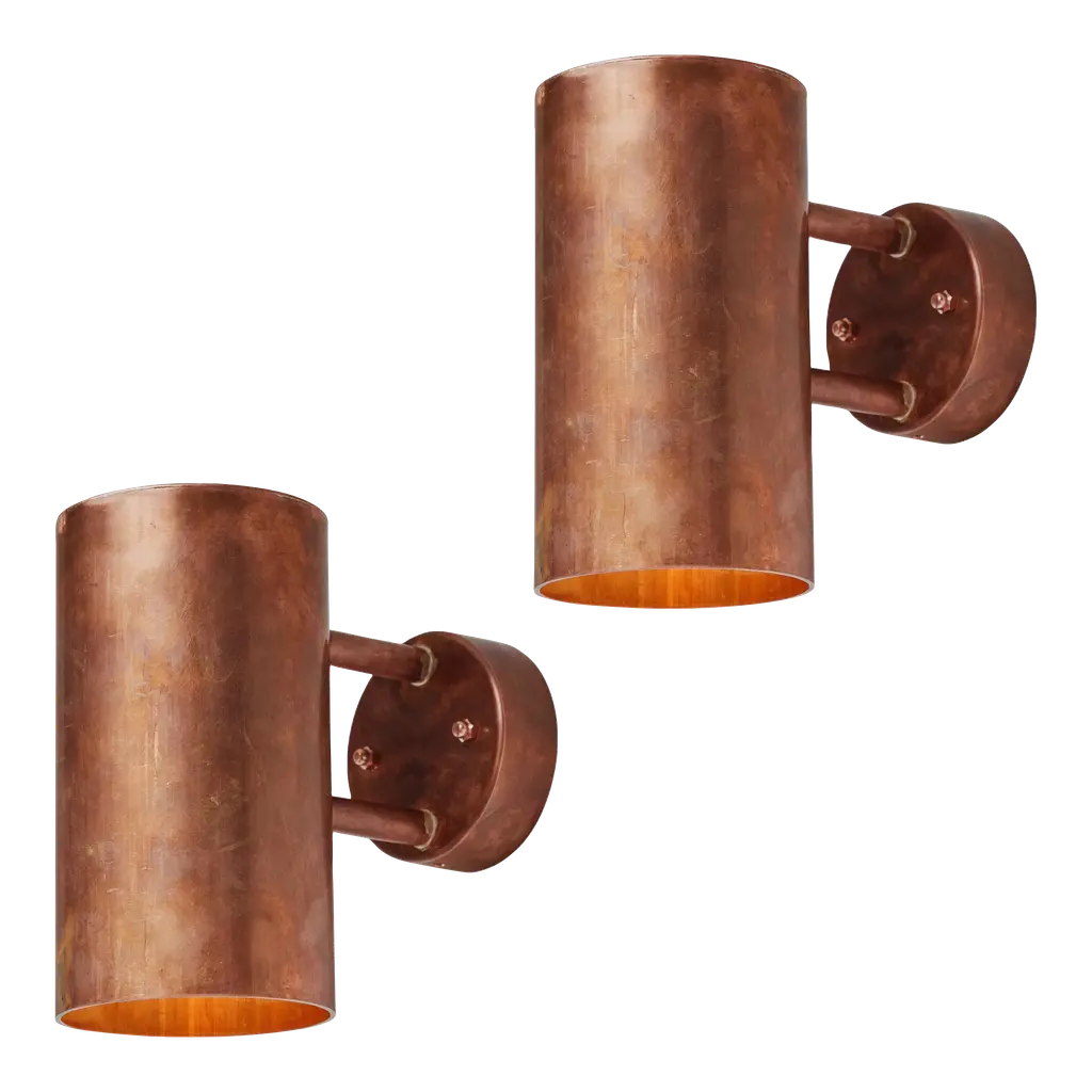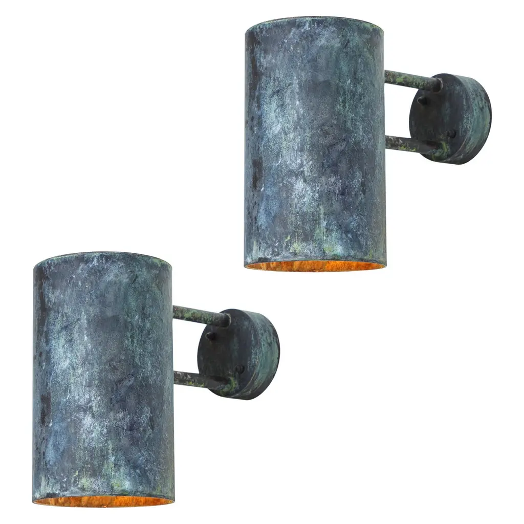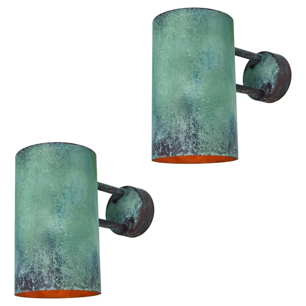 Large Hans-Agne Jakobsson C627 'Rulle' raw copper outdoor sconce. An exclusive made for U.S. and UL listed authorized re-edition of the classic Swedish design executed in raw unlacquered and unpolished copper. An incredibly refined design that is quintessentially Scandinavian. Also available in smaller size.Price is per item. Available in unlimited quantities in choice of raw brass, raw copper, verdigris, darkly patinated verdigris, dark brown patinated, and white or black painted metal. Several raw copper & brass lamps in-stock and ready to quick ship. Patinated and painted variants are made to order in approximately 2-3 weeks, but can be expedited for an additional fee. Please note that in-stock inventory availability can change at any time. For time-sensitive orders, kindly inquire prior to purchasing. All sales are final.Authorized re-edition newly produced by Orsjo, Sweden. Professionally wired for US electrical. For indoor or outdoor use. Hardwires to a US junction box. Accommodates a single standard medium base 100W equivalent LED bulb (or 60W incandescent). UL listed.Please note only one representative example is featured in the photos. This lamp is fabricated in raw and unlacquered copper that will naturally patinate over time and can already show varied signs of patination through exposure to the elements, handling, storage, etc., which may result in variation and irregularities.Made to order. All sales are final.