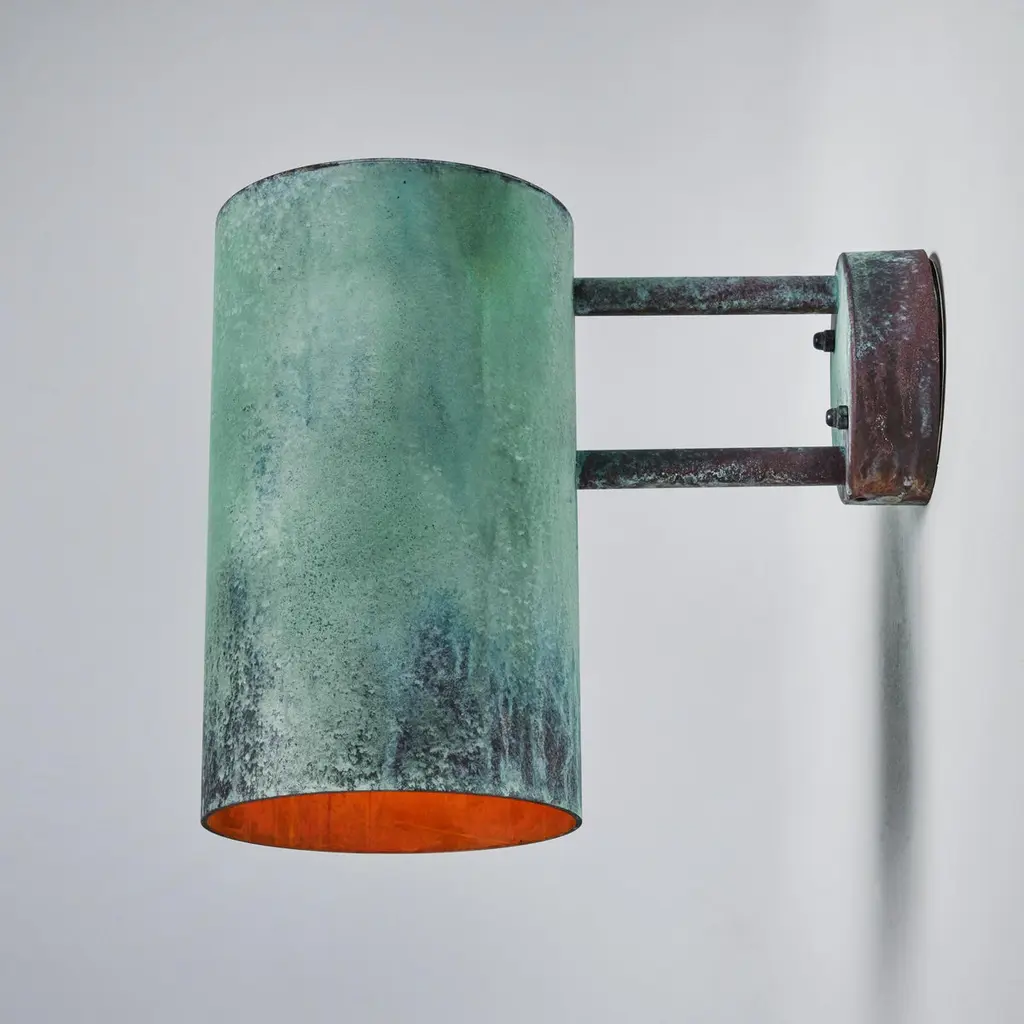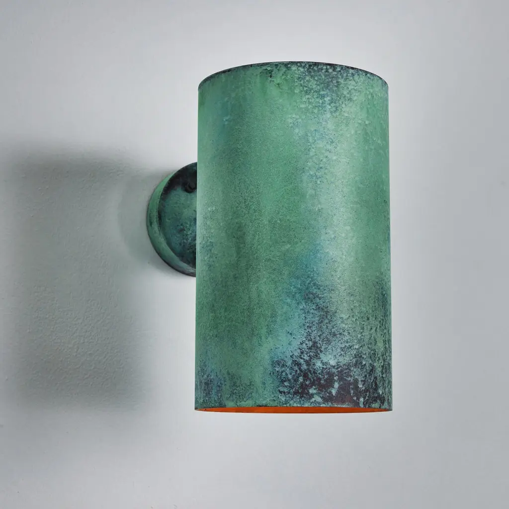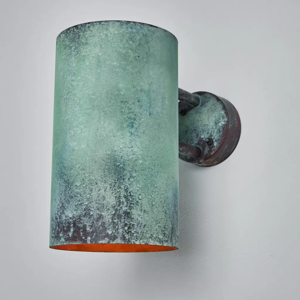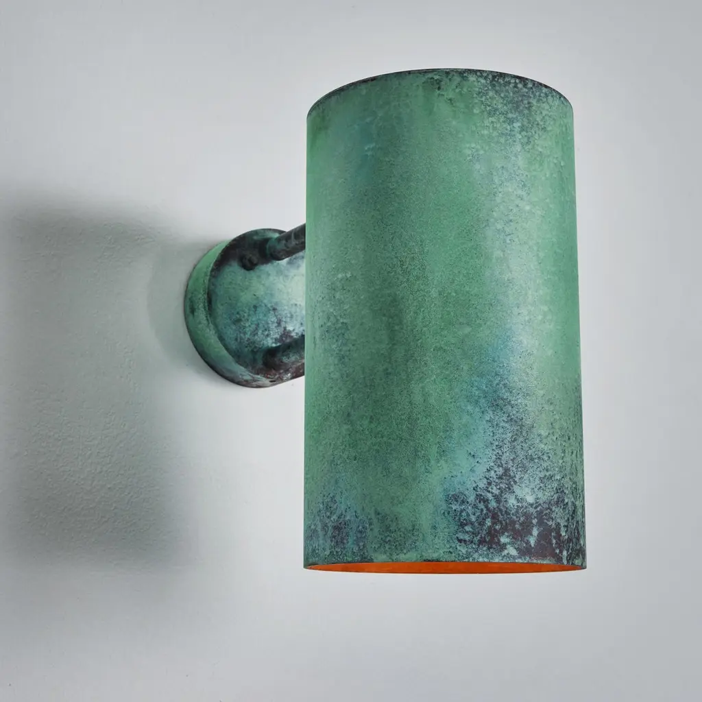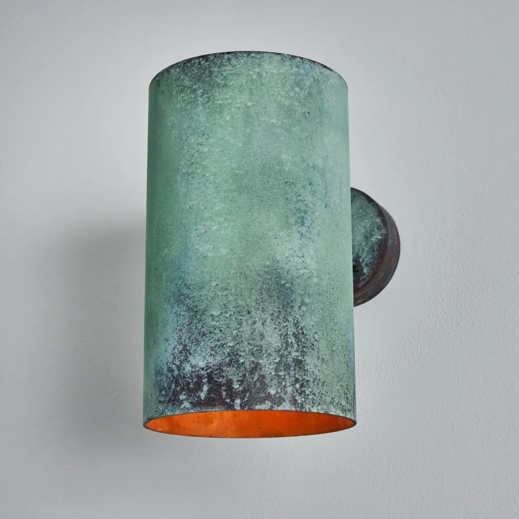 Large Hans-Agne Jakobsson C627 'Rulle' verdigris patinated sconce. An exclusive made for U.S. and UL listed authorized re-edition of the classic Swedish design executed in richly patinated metal with raw unlacquered metal interior that will continue to develop a lovely patina over time. An incredibly refined design that is quintessentially Scandinavian. Suitable for both indoor or outdoor use.Also available in smaller size. Price is per item. Available in unlimited quantities in choice of raw brass, raw copper, verdigris, darkly patinated verdigris, dark brown patinated, and white or black painted metal. Several raw copper & brass lamps in-stock and ready to quick ship. Patinated and painted variants are made to order in approximately 2-3 weeks, but can be expedited for an additional fee. Please note that in-stock inventory availability can change at any time. For time-sensitive orders, kindly inquire prior to purchasing. All sales are final.Authorized re-edition newly produced by Orsjo, Sweden. Professionally wired for US electrical. For indoor or outdoor use. Hardwires to a US junction box. Accommodates a single standard medium base 100W equivalent LED bulb (or 60W incandescent). Only one representative example of the patinated lamps is featured in the photos. Raw metal interior can vary from lamp to lamp. Please note that the chemical patination process can result in unique variation from lamp to lamp including streaking, flaking, spotting, discoloration, raw metal lines at the solder joints, patchiness and other irregularities, including inside the shade. Finish may vary from lamp to lamp, with darker and lighter color variations possible that may differ from the listing photos. Patinas can also change, fade over time and even rub off due to handling, storage, and exposure to the elements, resulting in further variation and irregularities. Patination is a dynamic process which continually evolves in beautifully unpredictable ways to create a unique look with its own special characteristics.Made to order. All sales are final.