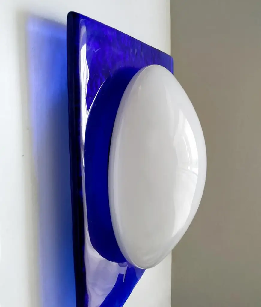 Large Italian Vintage Geometric Murano Glass Wall Or Ceiling Light Sconce, 1970s