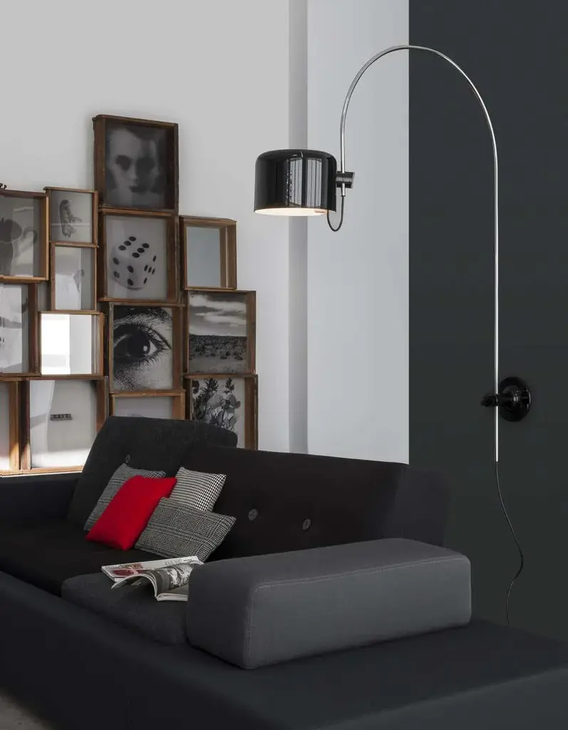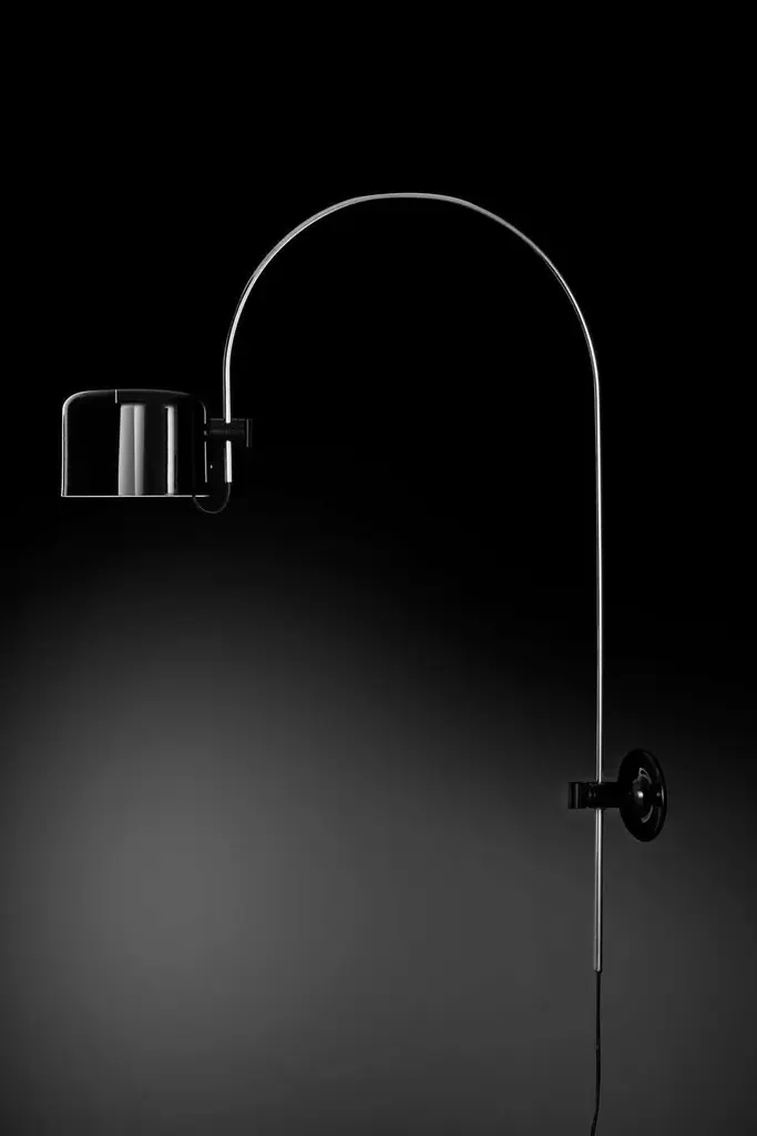 Large Joe Colombo Model #1158 "Coupé" Wall Lamp in Black for Oluce Executed in painted metal and chrome, this is one of the most refined Minimalist Italian designs of the midcentury and an icon for Colombo. A highly adjustable wall light, the shade can be rotated up/down and right/left as the chrome arm rotates freely 180 degrees. Originally designed in 1967, this iconic lamp is still made by Oluce in Italy using many of the original manufacturing techniques with scrupulous attention to detail, materials, and craftsmanship. The Coupé series was initially conceived as a variation of the Spider family, of which it has kept its base and stem. The simple, ingenious mechanism that connects the stem to the head makes it possible to direct the beam in several directions, by moving the dome up, down, and sideways. In 1968, Coupé won the ”International Design Award” of the American Institute of Interior Designers in Chicago. It is part of the permanent collection at both the MoMA in New York and the ”Neue Sammlung” Museum in Munich. Price is per item. Available to order in unlimited quantities in choice of scarlet red or black. The Coupé is also available as a mini 'Model 2201' table lamp, the larger ‘Model 2202’ table lamp, a straight floor lamp 'Model 3321', or the floor lamp with an arc, 'Model 3320', all in separate listings. This listing is for the Coupé wall lamp in black. In-stock lead time 4-6 weeks. Out of stock lead time can add 7-8 weeks or more. Please note that inventory availability is subject to change without notice. Please inquire for current lead times prior to placing time-sensitive orders. Accommodates 1x maximum 100W equivalent standard medium base E26 LED bulb (bulb not included). Powered by black cord with US plug. Not UL Listed. UL listing possible through a third party vendor, please inquire for details. Made to order. All sales are final.
