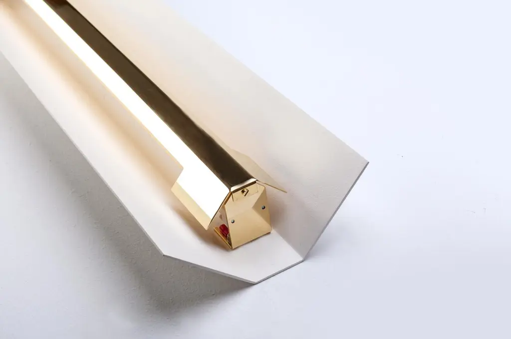 Large misalliance Ex pure white wall light by Lexavala.Dimensions: D 16 x W 130 x H 8 cm.Materials: powder coated shade with details made of brass or stainless steel.There are two lenghts of socket covers, extending over the LED. Two short are to be found in Suspended and Surface, and one long in the Wall model. Customization available. Choosing a different cover than the one in stock involves an additional fee.Hello! My name is Jakuband I’m glad you’re here.Light allows us to create everything.It illuminates the paths we walk and the tables we write our tales on.I have always wanted to create somethingthat standouts from the first time it shines and maintains timeless standards.Every piece released by this companyis a carefully touched product ment to tell something.One isn’t just a lamp. It’s a jewelery with a collection of emotions.I strongly believe that here is where your strivefor a key element of decor could end.Combining efficiency of industrial workspace and magnificanceof handcrafted materials there was only one outcome – Lexavala.Minimalism with boundless range.My company delivers practical art. I make sure every lampaccepted in your living space is going to become a worthy part of your story.