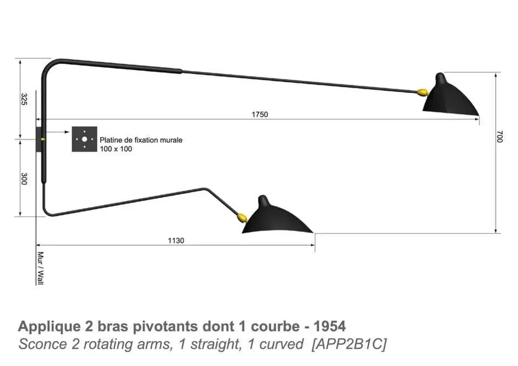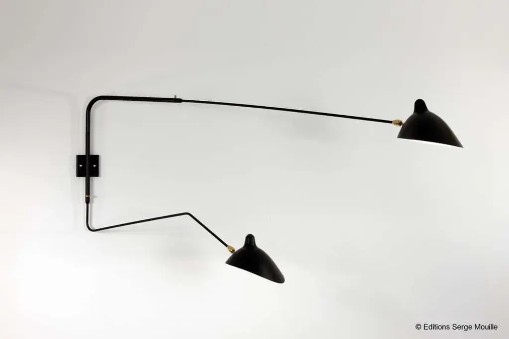 Large Serge Mouille 2-Arm Wall Lamp With Straight And Curved Rotating Arms