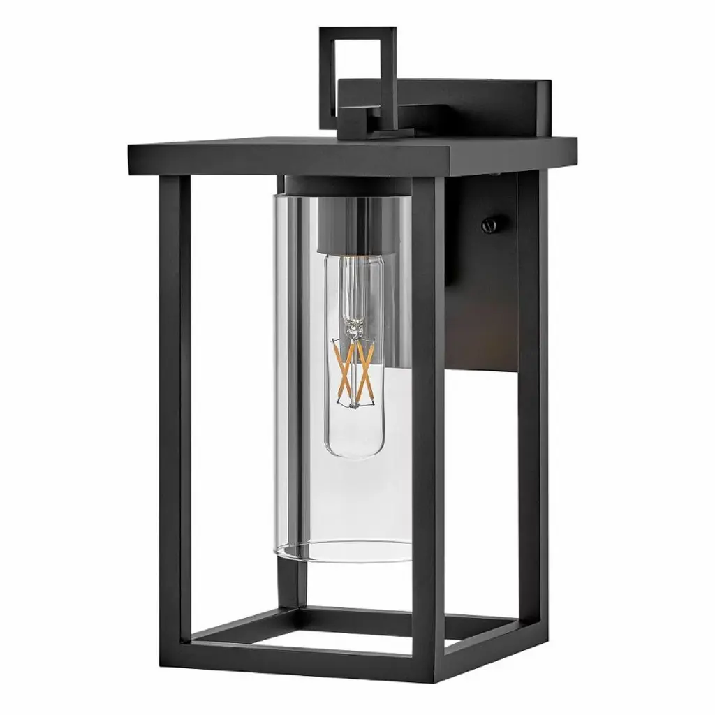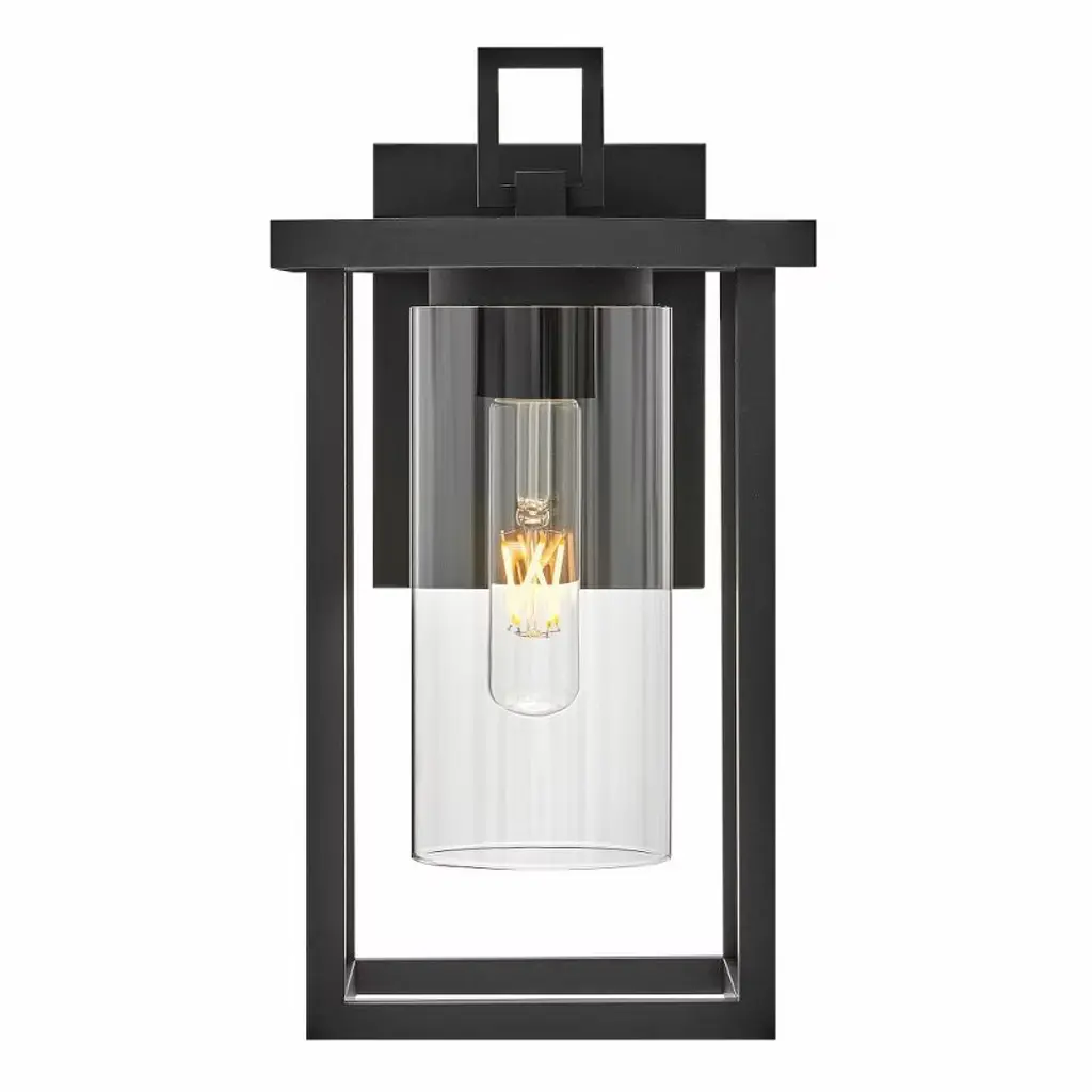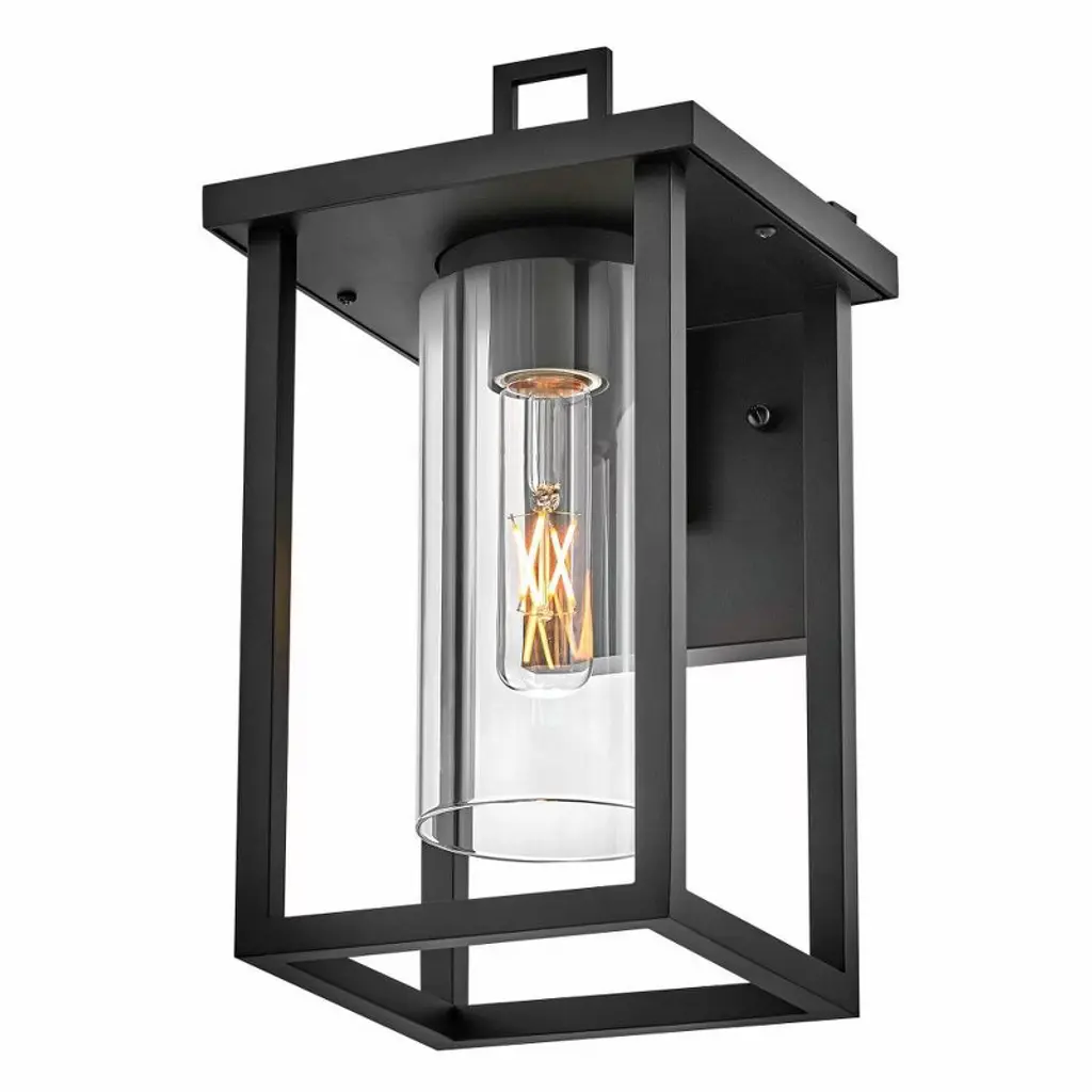 Mateo brings a transitional cool vibe to the block. The clean lines, clear glass, and strong structure come together to create a classic outdoor lantern silhouette that instantly boosts curb appeal. The mix of rectangular angles and cylindrical glass adds dimension that draws the eyes in. Material: Aluminum, Finish Color: Black, Width: 7", Height: 13", Length: 8.5", Depth: 8.5", Height From Outlet Box: 4.5", Backplate Width: 4.75", Backplate Length: 6.5", Lamping Type: LED, Number Of Bulbs: 1, Wattage: 10 Watts, Dimmable: Yes, Moisture Rating: Wet Rated