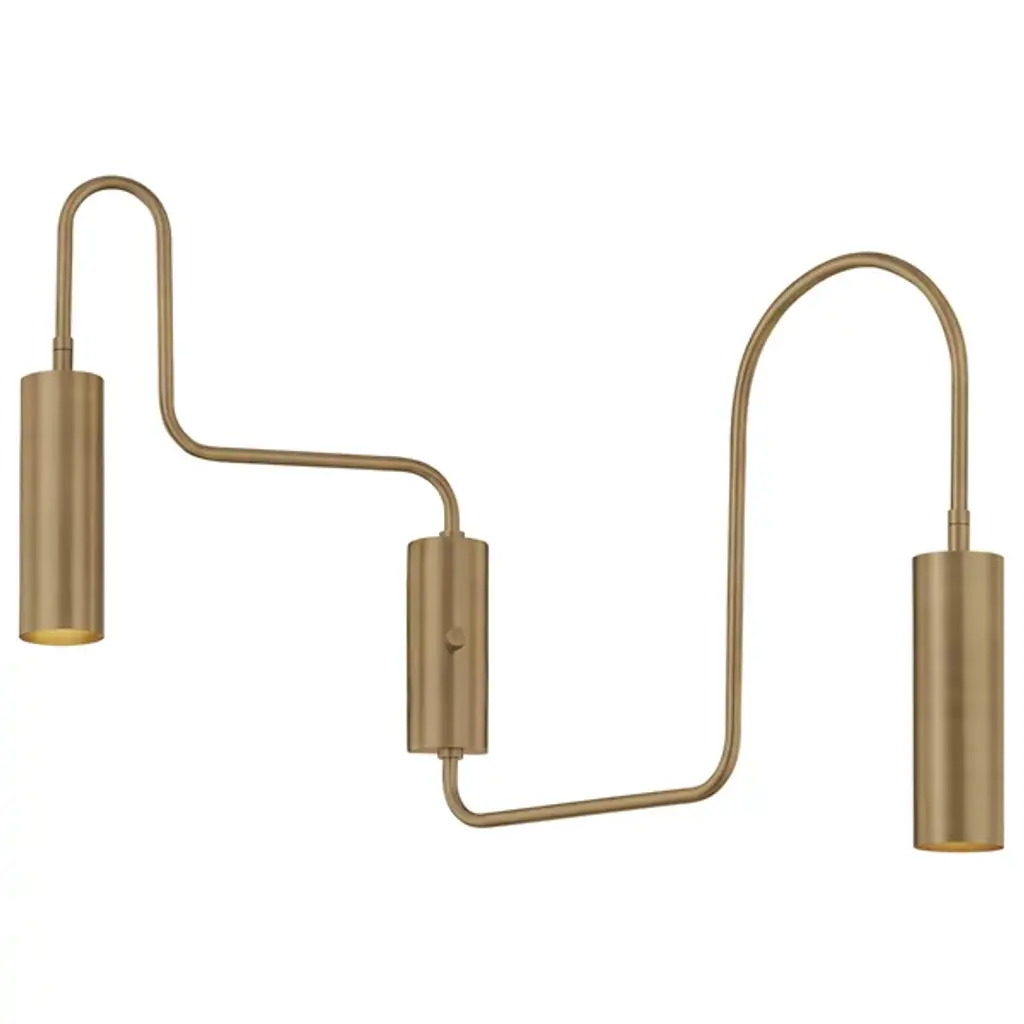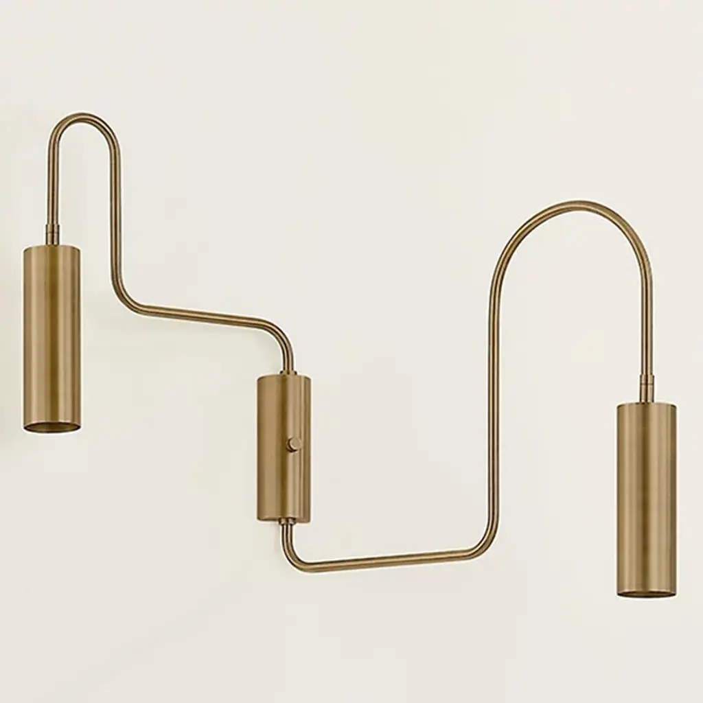 The Lark Wall Sconce from Troy Lighting bends geometry into purposeful art through its rotating arms shaped into arcs and right angles. Two cylindrical heads allow for directed illumination according to need, putting light precisely where required. The steel construction gives this fixture lasting quality while maintaining its distinctly graphic profile. An on/off switch integrated directly into the fixture provides convenient control. This sconce bridges playful and practical with its adaptable design that responds to changing lighting needs. Its artistic approach to utility makes it a notable addition to living spaces where adjustable task lighting enhances daily activities.