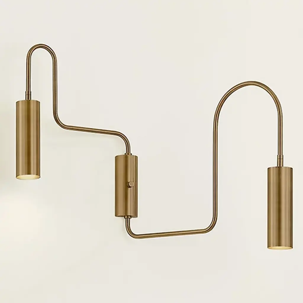 The Lark Wall Sconce from Troy Lighting bends geometry into purposeful art through its rotating arms shaped into arcs and right angles. Two cylindrical heads allow for directed illumination according to need, putting light precisely where required. The steel construction gives this fixture lasting quality while maintaining its distinctly graphic profile. An on/off switch integrated directly into the fixture provides convenient control. This sconce bridges playful and practical with its adaptable design that responds to changing lighting needs. Its artistic approach to utility makes it a notable addition to living spaces where adjustable task lighting enhances daily activities.