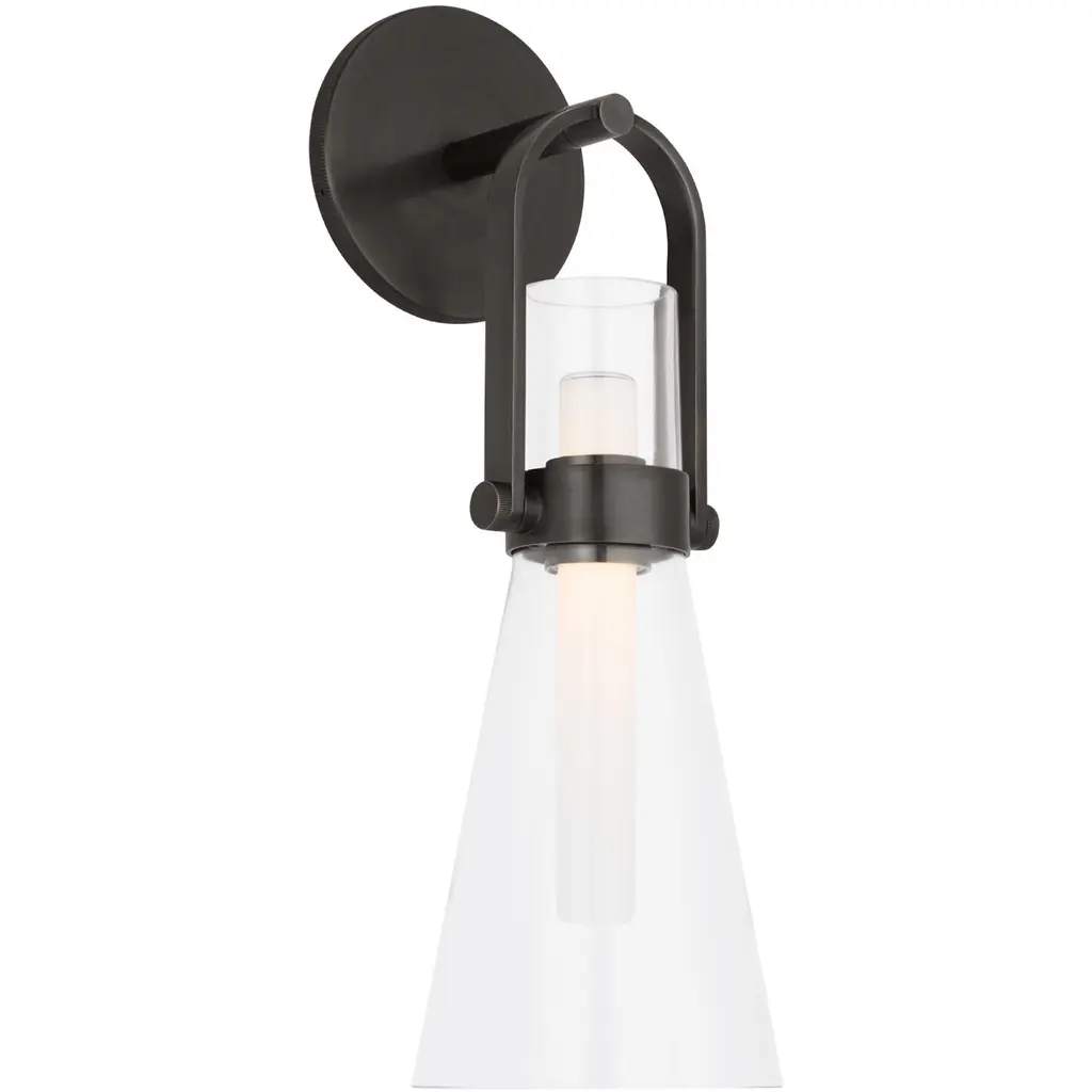 The Larkin LED Conical Bracketed Wall Sconce from Visual Comfort Signature combines classic aesthetics with contemporary functionality. Designed by Ian K. Fowler, it is meticulously crafted from durable brass and glass. Fowler's design expertise shines through in this fixture, showcasing an innovative vision and meticulous attention to detail. With enduring construction that guarantees both longevity and style, this wall sconce adds a touch of sophistication and grace to your space, epitomizing Fowler's renowned design prowess.