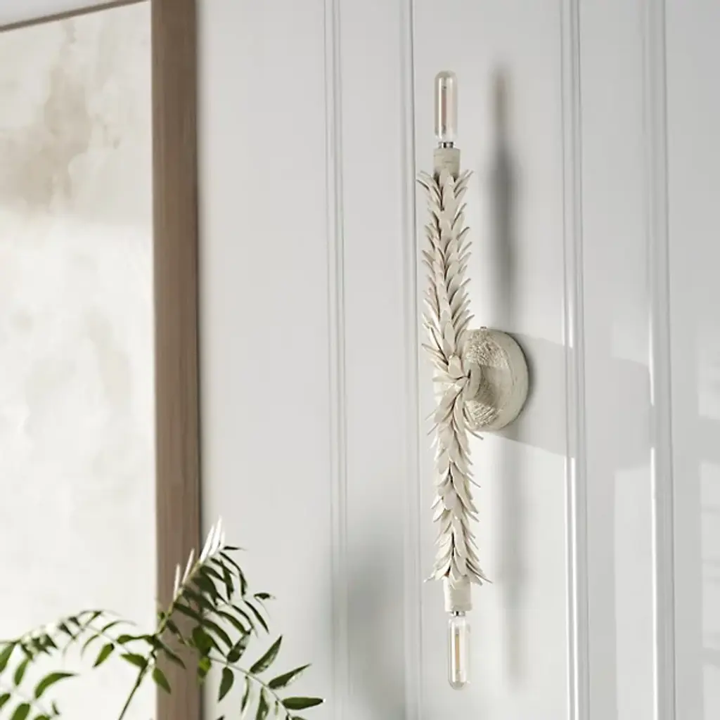 Decorate your living space with the nature-inspired Larkspur Wall Sconce by Palecek. This wall sconce features hand-cut oval-shaped coco shells, which are elegantly layered over a fine metal frame. The Larkspur Starburst Chandelier is secured by a circular backplate at your wall and is illuminated by a brilliant LED which enhances the visibility of your surroundings.