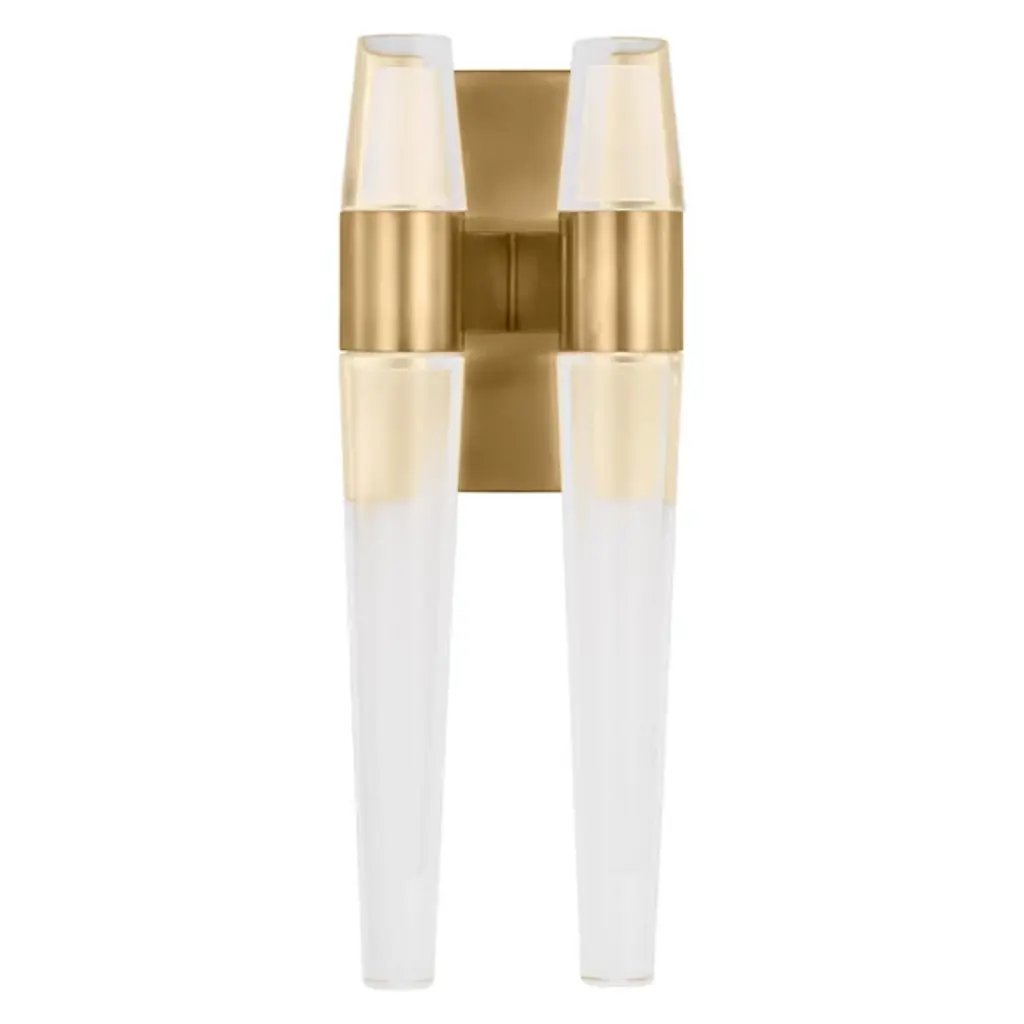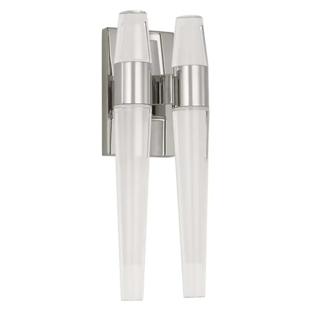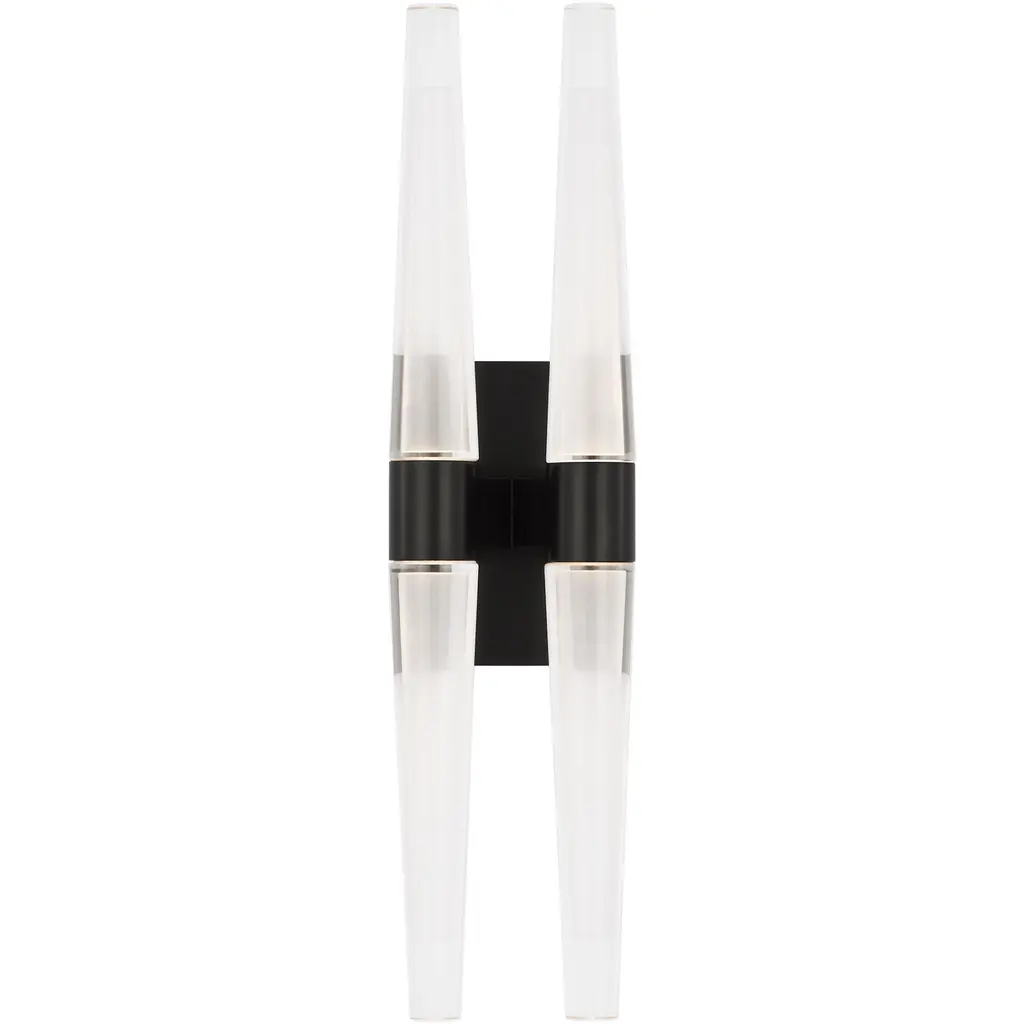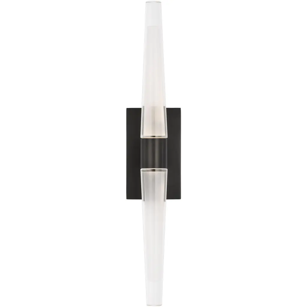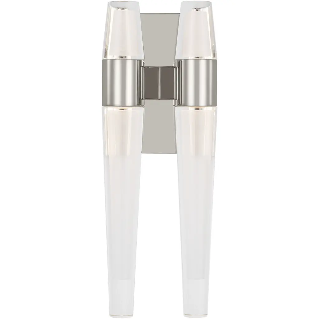 The Lassell Double LED Wall Sconce from Visual Comfort Modern delivers bold scale and clean design to contemporary interiors. Designed by Sean Lavin, this ultra-modern fixture features two laser-etched crystal glass tubes extending from short metal arms, diffusing soft light while providing subtle downlighting. Its simple form and oversized profile make a confident statement in hallways, bedrooms, or living spaces. Built from premium materials, the design expresses crisp clarity and sculptural balance.