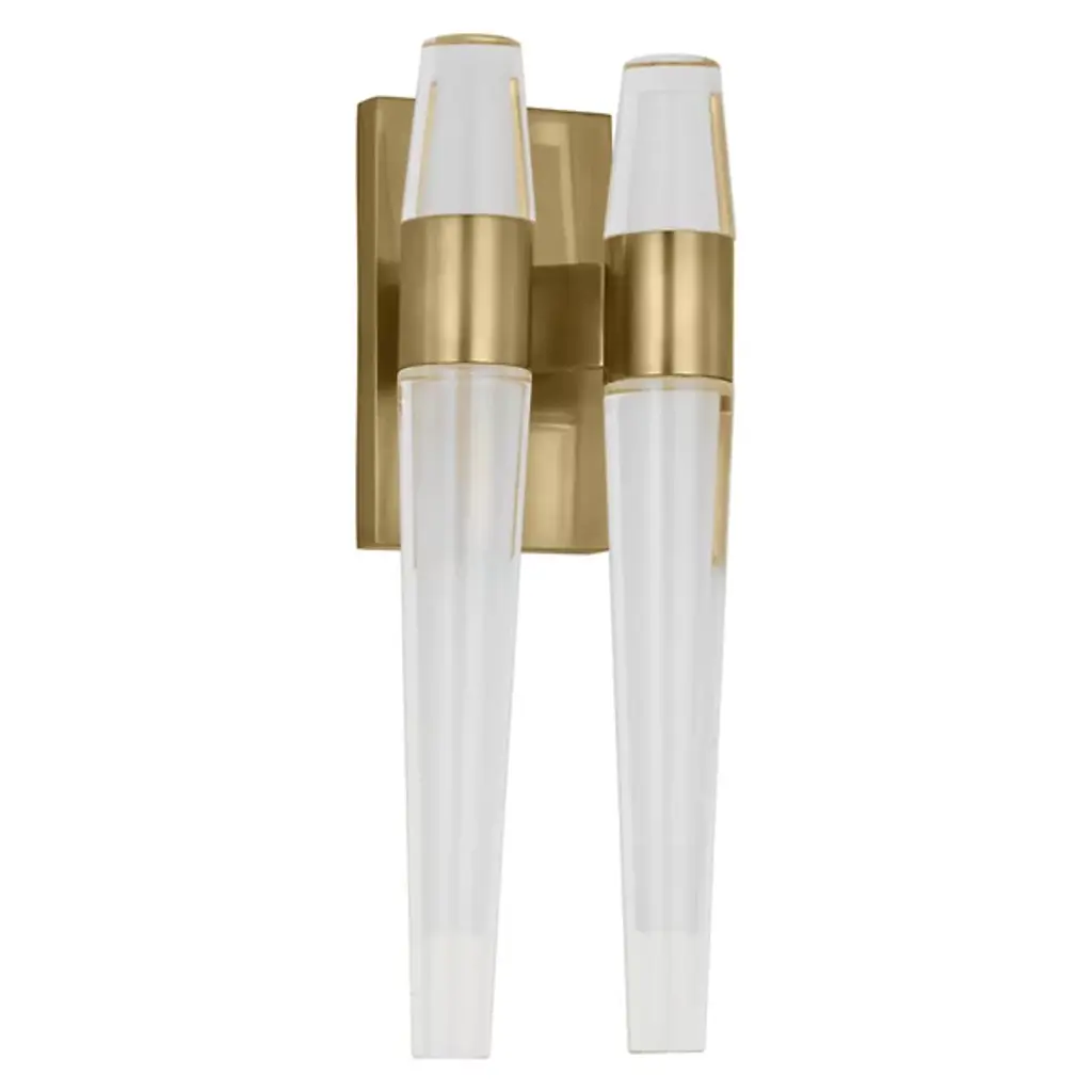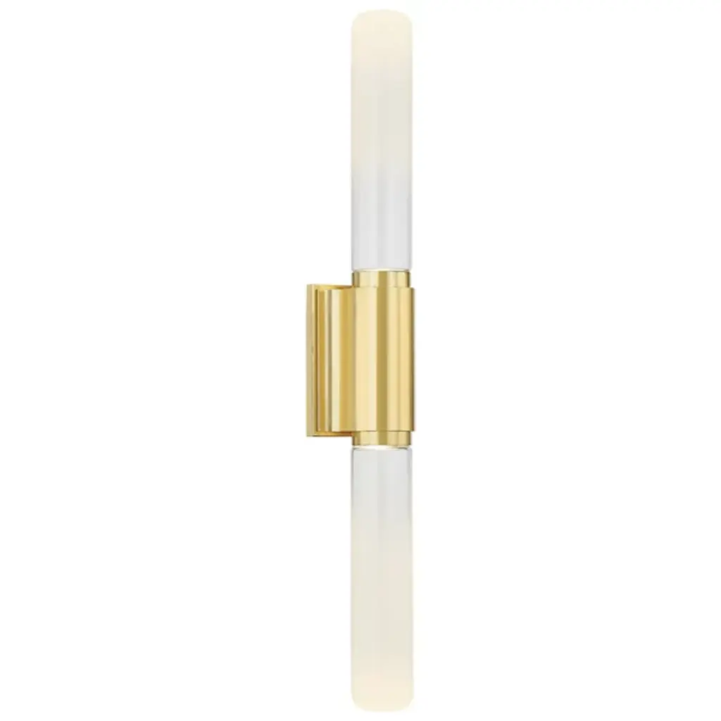 The Lassell Double LED Wall Sconce from Visual Comfort Modern delivers bold scale and clean design to contemporary interiors. Designed by Sean Lavin, this ultra-modern fixture features two laser-etched crystal glass tubes extending from short metal arms, diffusing soft light while providing subtle downlighting. Its simple form and oversized profile make a confident statement in hallways, bedrooms, or living spaces. Built from premium materials, the design expresses crisp clarity and sculptural balance.