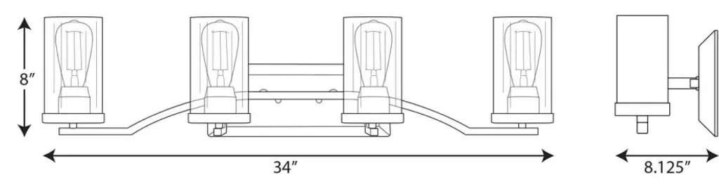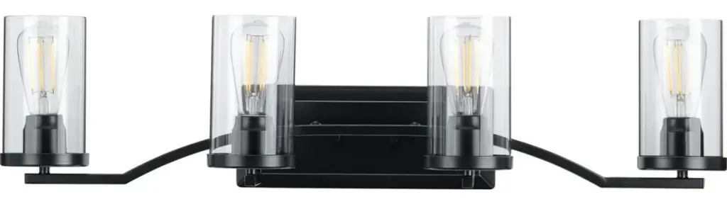 Manifest a swoon-worthy lighting experience with the stunning blend of modern and traditional styles in this one-of-a-kind light fixture. Square tubing with clean, sharp angles demand your attention and appreciation. A beautiful black finish coats a handsome rectangular backplate. Striking vintage light sockets boast their bold yet simple demeanors within the safety of sophisticated clear glass shades.Bulb Type: IncandescentBulb Wattage: 60 WBulb Included: NNumber of Bulbs: 4