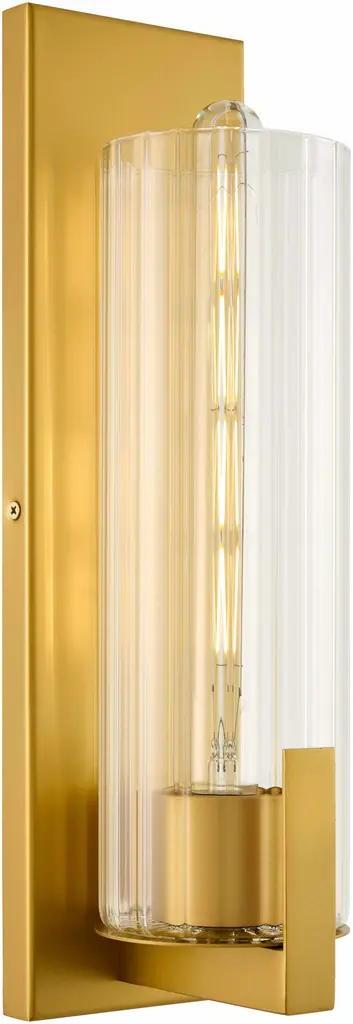 Collection: Latacunga Colors: Gold, Clear Material: Fixture: Iron / Shade (Outside): Glass / Shade (Inside): Glass Styles: Traditional Made In: China Lighting Type: Wall Sconce Shade Material: Glass Shade Color: Clear Number of Bulbs: 1 Socket Type: E-26 Bulb Wattage: 60W