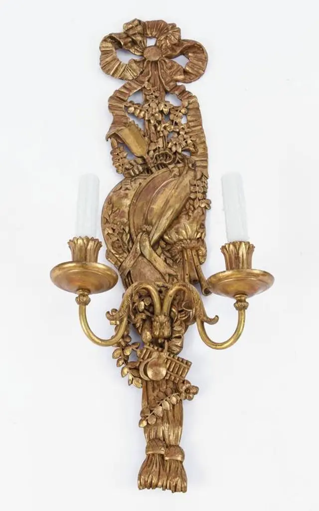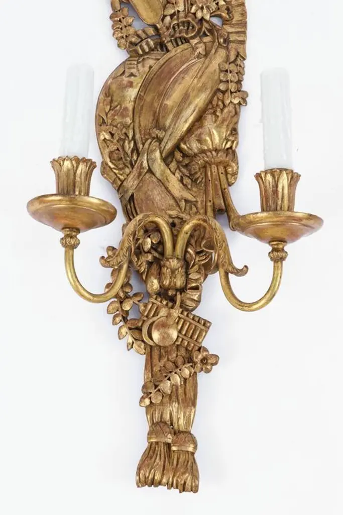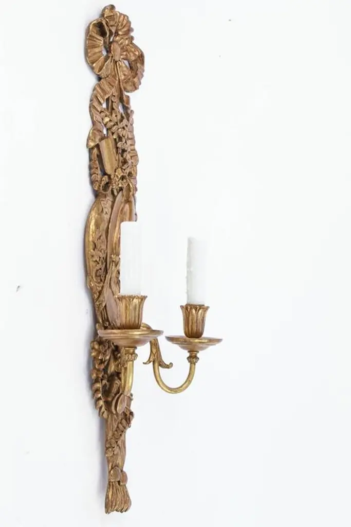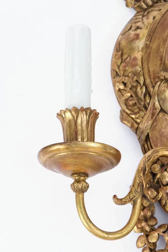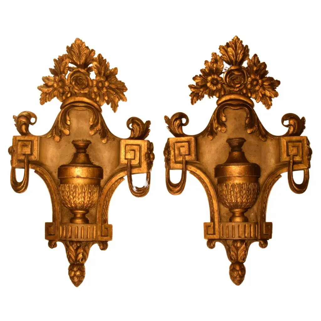 Late 19th Century Pair Of Italian Carved Giltwood And Bronze Sconces