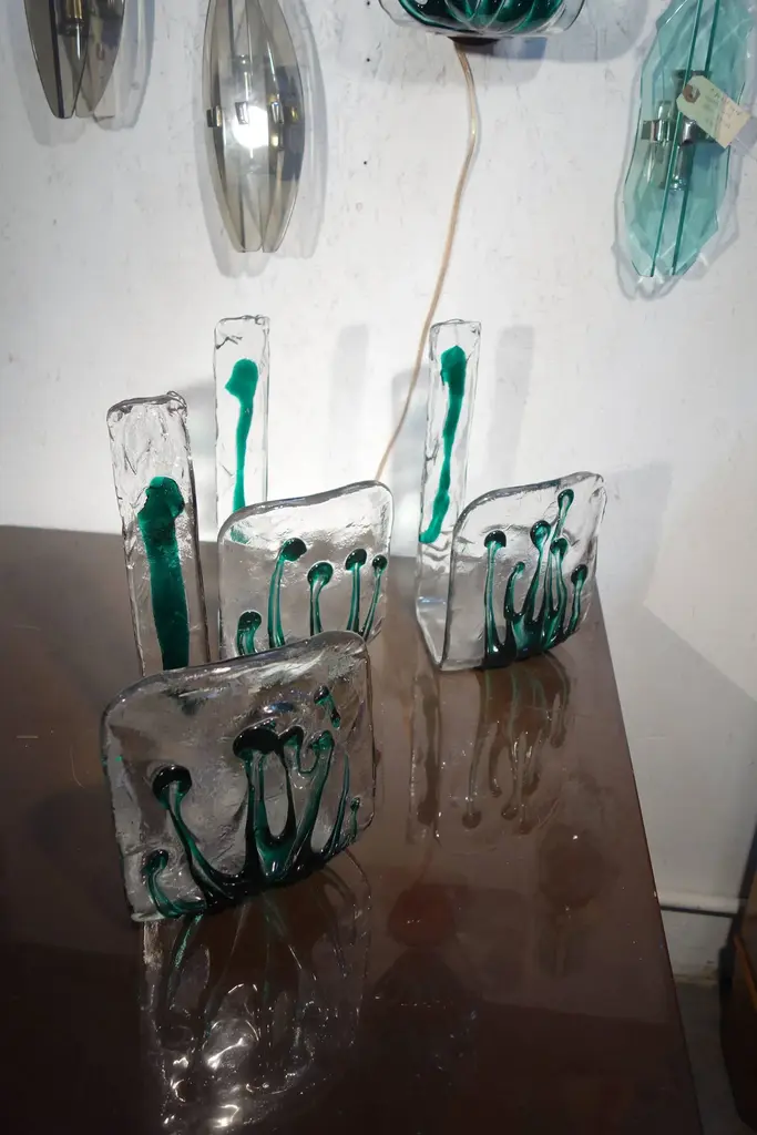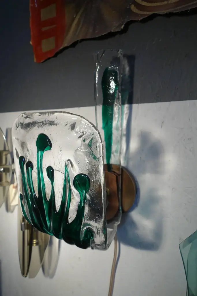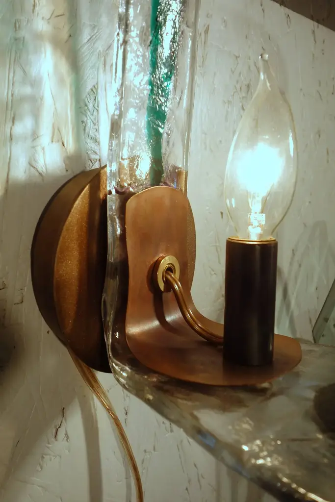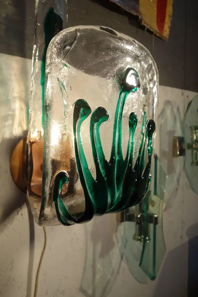 Late 20th Century Italian Mid Century Murano Attributed Art Glass Sconces With Copper Finish