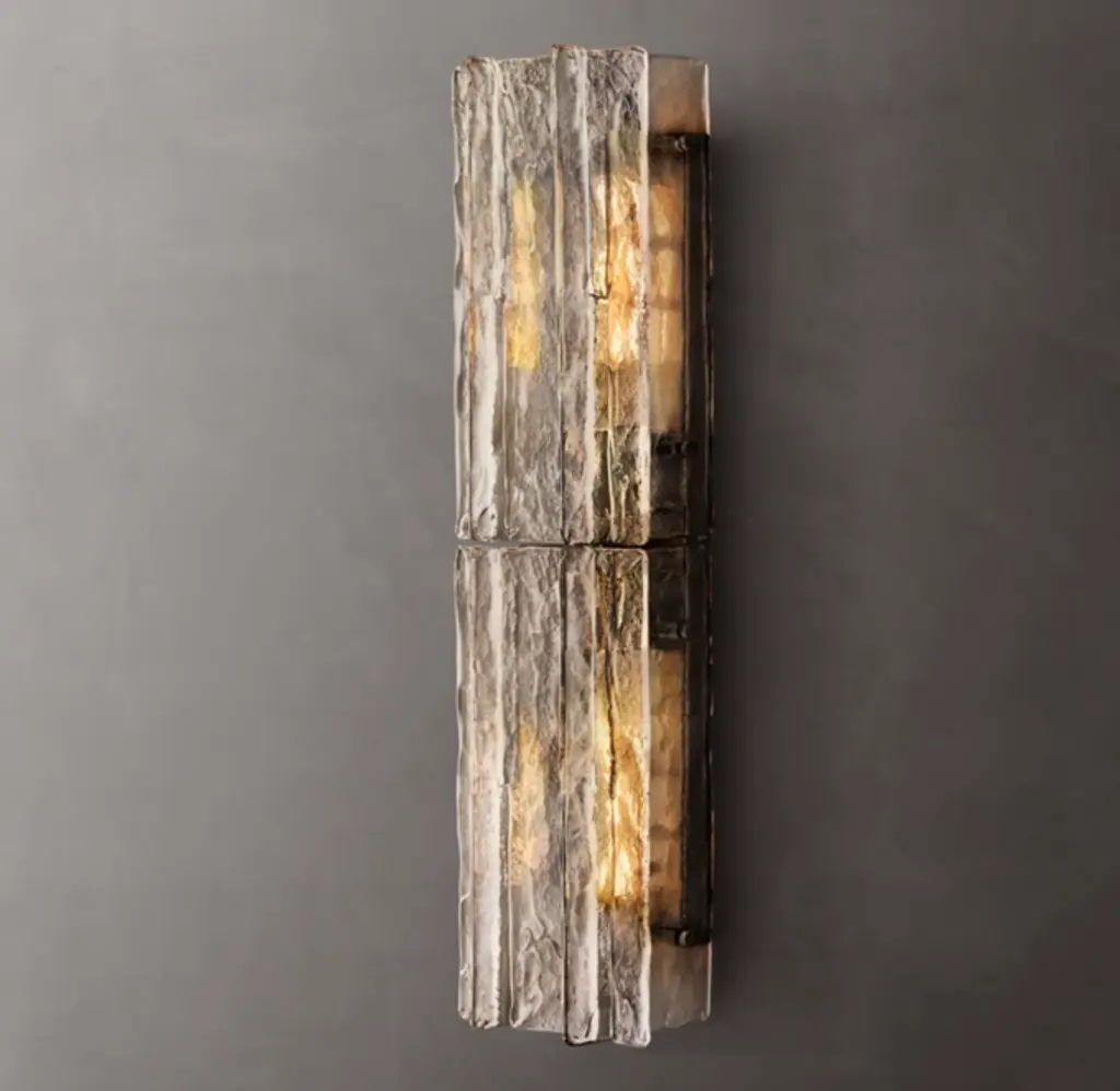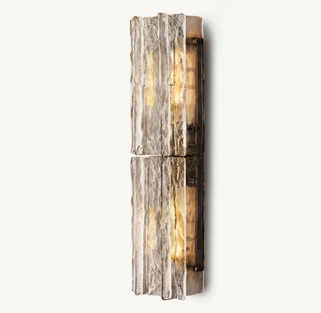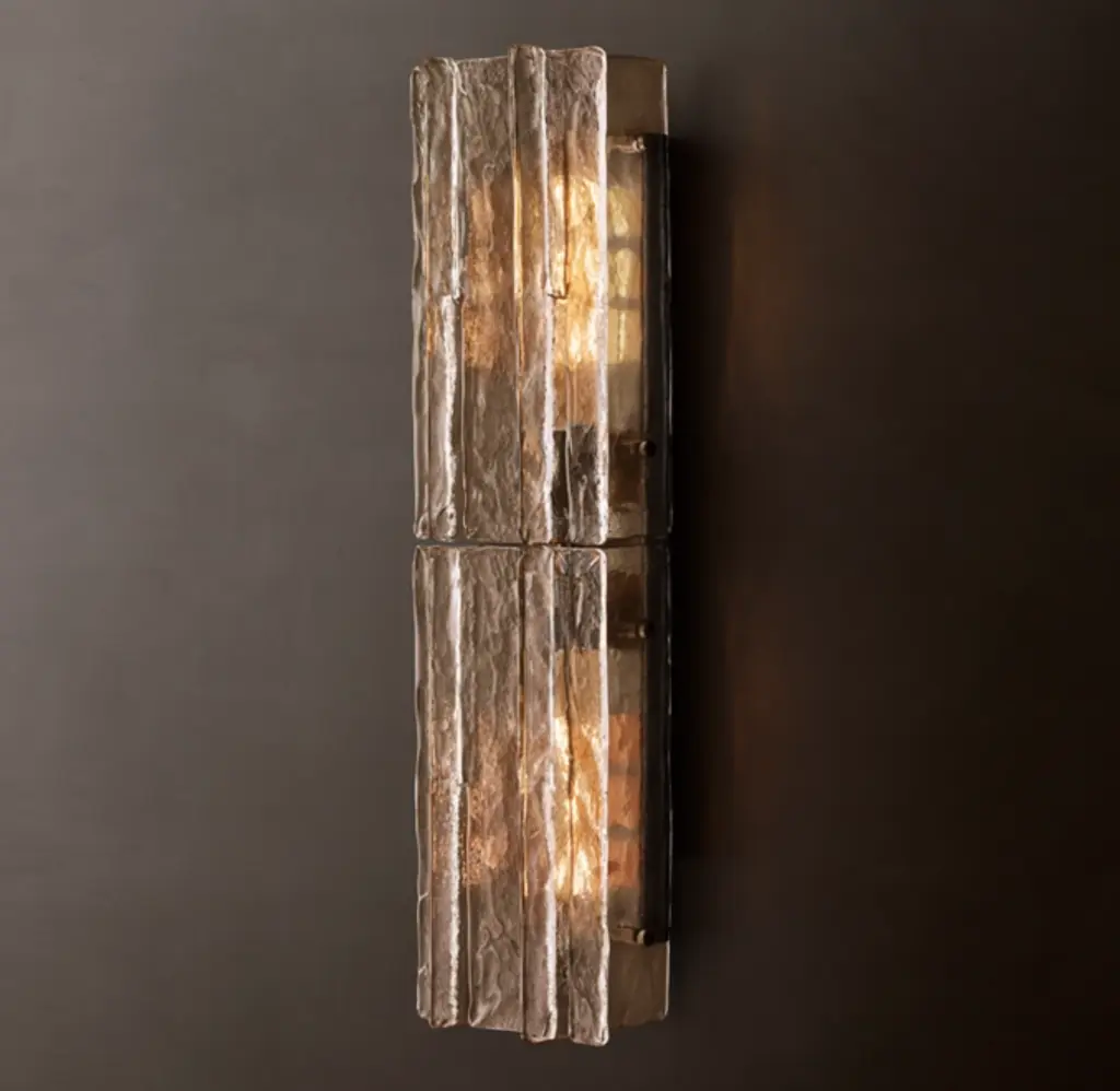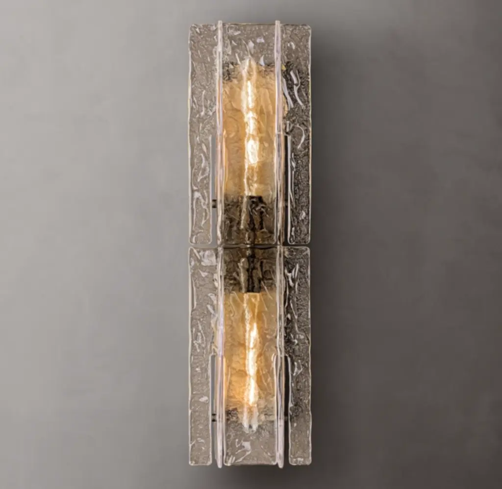 Crafted of solid cast glass, our Lattice collection's interlocking planes recall the geometric precision of the midcentury International Style. A study in repetition and rhythm, the linear form employs open space to lend a weightless feel. Gently rounded corners on the fluid, rippled panes subtly soften the outline, while diffused light glows from within. ALSO AVAILABLE IN CLEAR GLASSSHOP THE ENTIRE COLLECTION