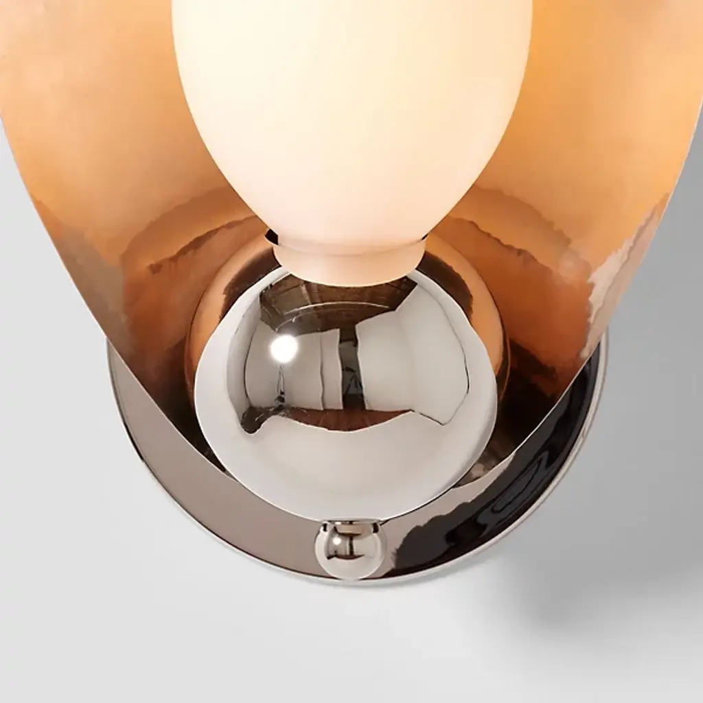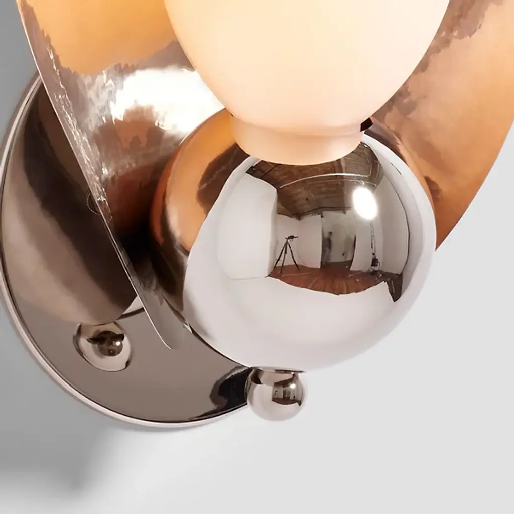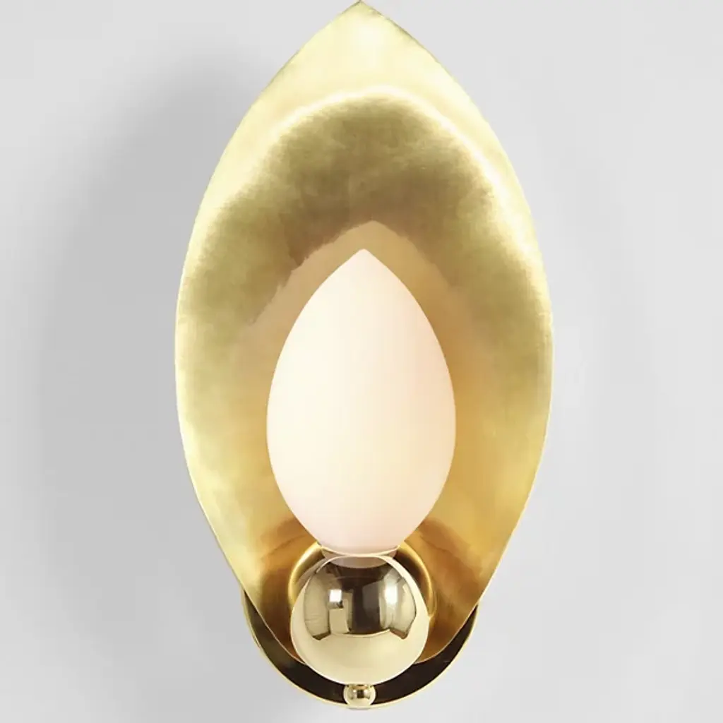 Bring a natural aesthetic to your home with the Laurel Blossom 01 Wall Sconce by Rosie Li Studio. Designed by Rosie Li, these wall sconces take on the contoured forms of leaves. Fine brass has been meticulously worked into a pointed shape that resembles the companion glass shades. Each sconce emits brilliant light from an integrated LED. The eye is drawn to the elegant metal globe onto which the shade is placed.