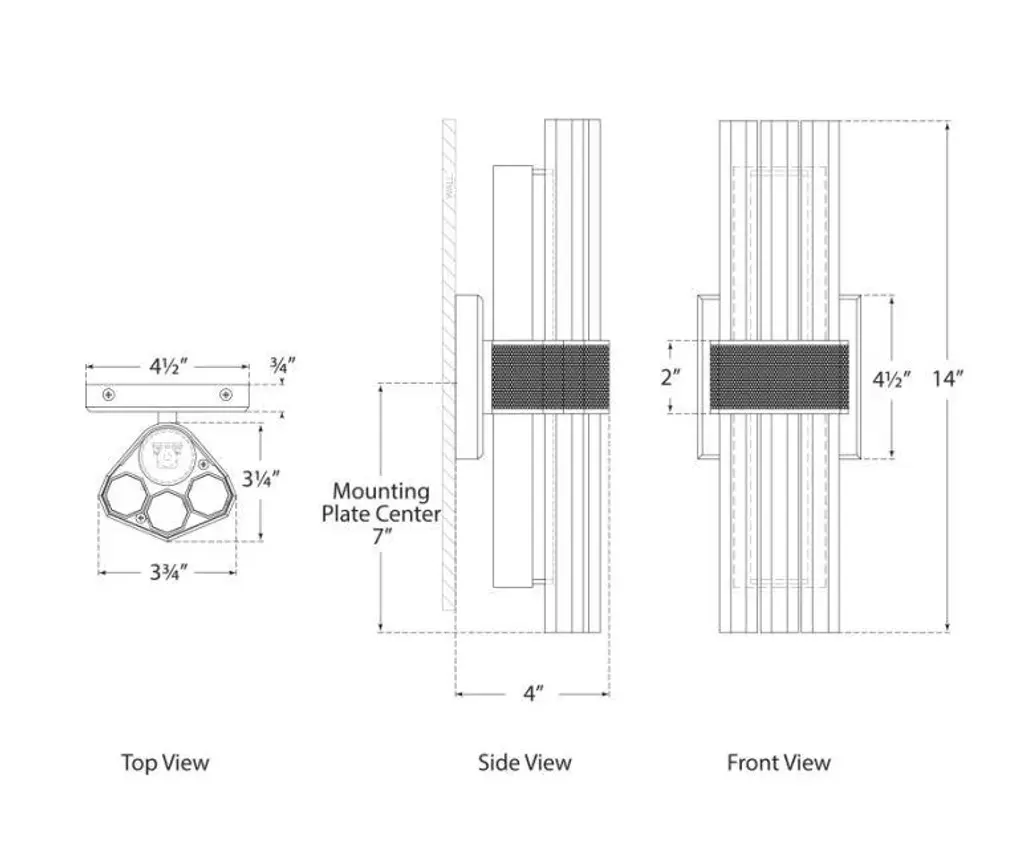 Fascio 14" Sconce in Bronze with Crystal Designer: Lauren Rottet Height: 14" Extension: 4.25" Backplate: 4.5" Square Mounting: Hardwire Shade Detail: Crystal Socket: Dedicated LED Wattage: 12w (1000lm) Safety Rating Location: DAMP