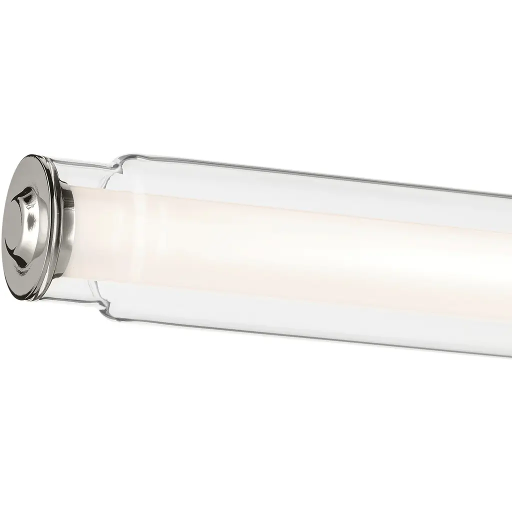 Say hello to a linear bath piece that meets the trending design of layered materials and metal finish accents, with the Laurene collection. Laurene's cylindrical clear outer glass provides striking visual interest and beautiful illumination. Its 3000K integrated LED light delivers a full room glow to brighten up any space. Plus, its available in a variety of sizes and finishes and can be installed vertically or horizontally--the choice is yours