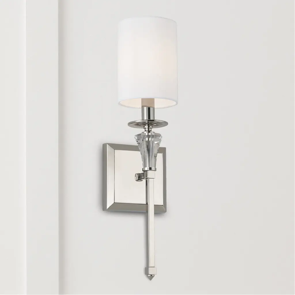 High-fashion meets high-shine with the Laurent 1-Light Sconce. The beveled backplate, crystal accents and reflective Polished Nickel finish give any space the look of runway glamour.