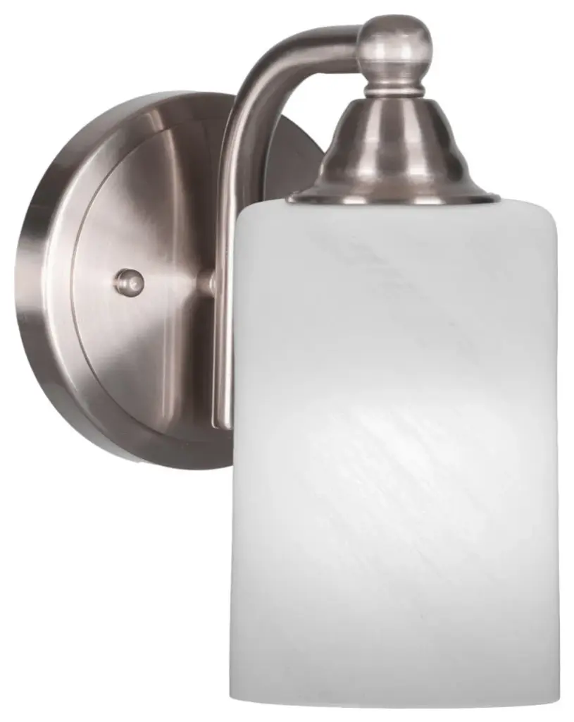 The Lauryn Bath Sconce from Alder & Ore delights with its clean and classic design. A transitional, one-light wall sconce with a smooth metal surface complemented by a milk glass shade, it provides a mix of bright downlight enhanced by warm, comfortable illumination that radiates through the glass. Its simple, stylish aesthetic and damp listing makes it a versatile addition to any bathroom decor, while the refined design works well across hallways and wall spaces.