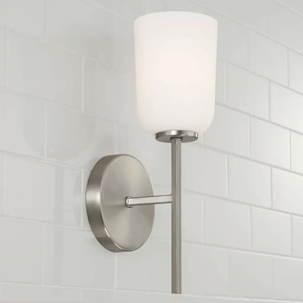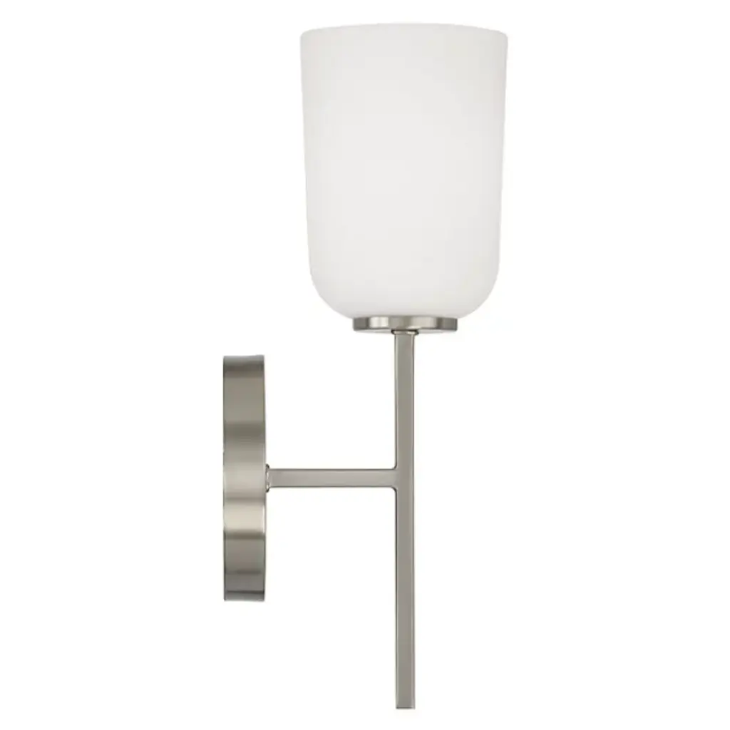 The Lawson Wall Sconce from Capital Lighting is a sophisticated lighting solution that effortlessly combines mid-century modern aesthetics with functional design. This wall sconce features a streamlined vertical arm that supports a contoured shade crafted from refined glass. The shade softly diffuses the light emitted by an LED, creating a lovely glow that enhances the ambiance of your space. The fixture is durably made with high-quality metal and securely mounted to your wall with a sturdy backplate, providing stability.