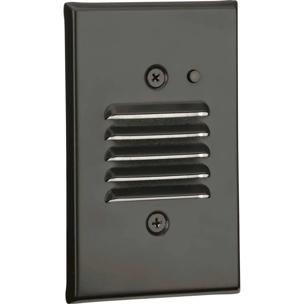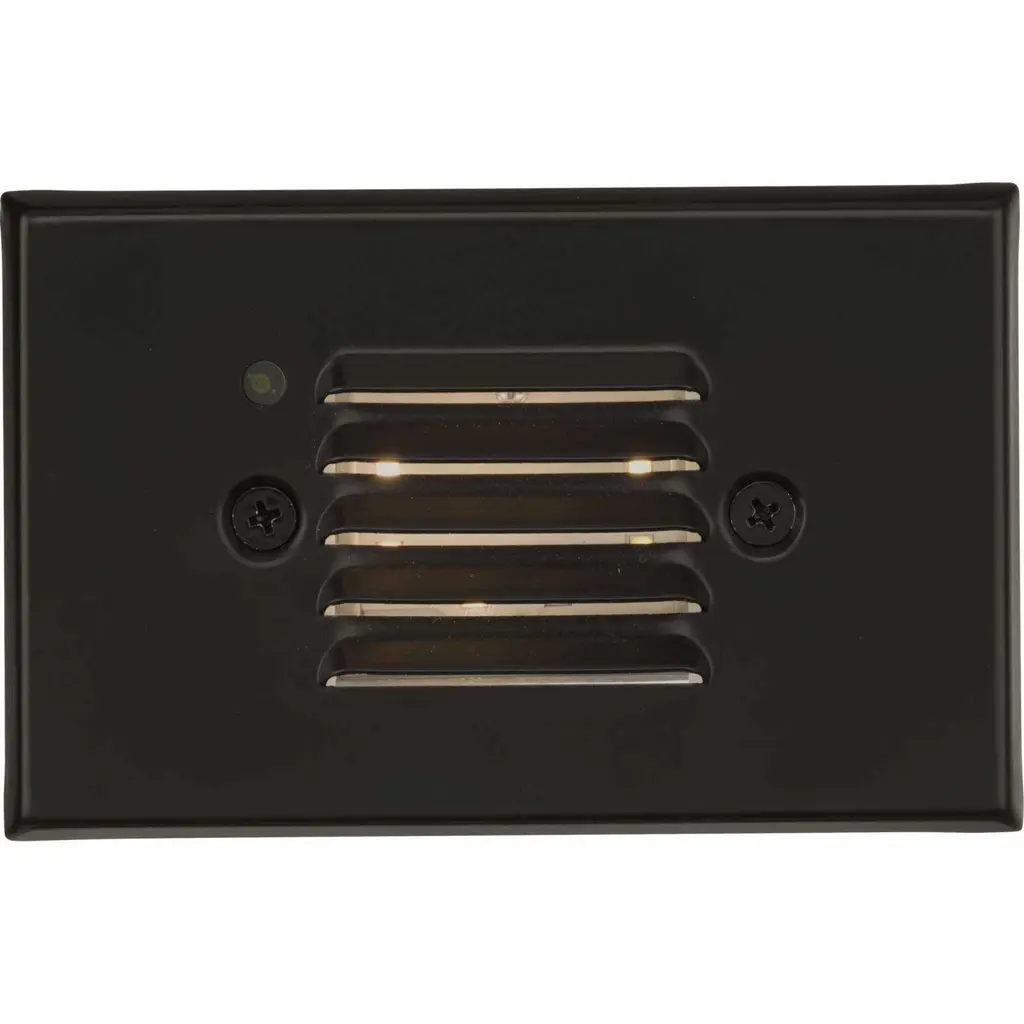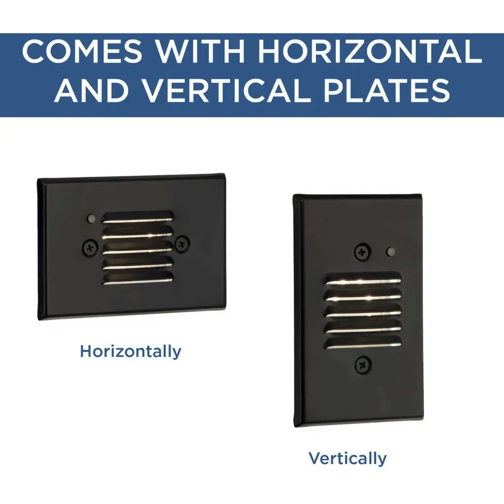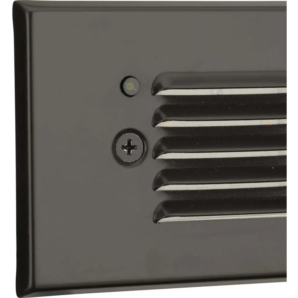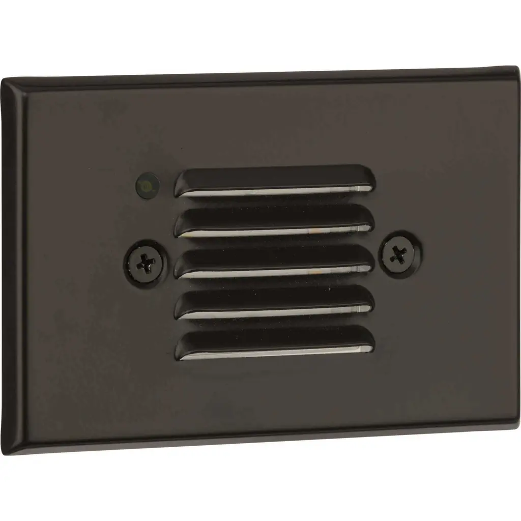 The LED Step/Wall Light finished in mellow antique bronze offers an elevated look to exterior architectural styles, whether residential or commercial. A horizontal and a vertical exterior face plate are provided to accommodate either a horizontally or vertically oriented installation. The step light features an integrated photocell with automatic dusk to dawn operation, automatically turning the fixture on and off at sunset and sunrise, eliminating the need for additional controls. The photocell and LED assembly is enclosed in a gasketed lens, allowing it to meet the rigorous demands of wet location use. The louvered face plates direct the light downwards to minimize glare and clearly illuminate stairs, walls, and walkways, resulting in performance, cost and safety benefits. It is cCSAus wet location rated for use in areas with direct water contact.