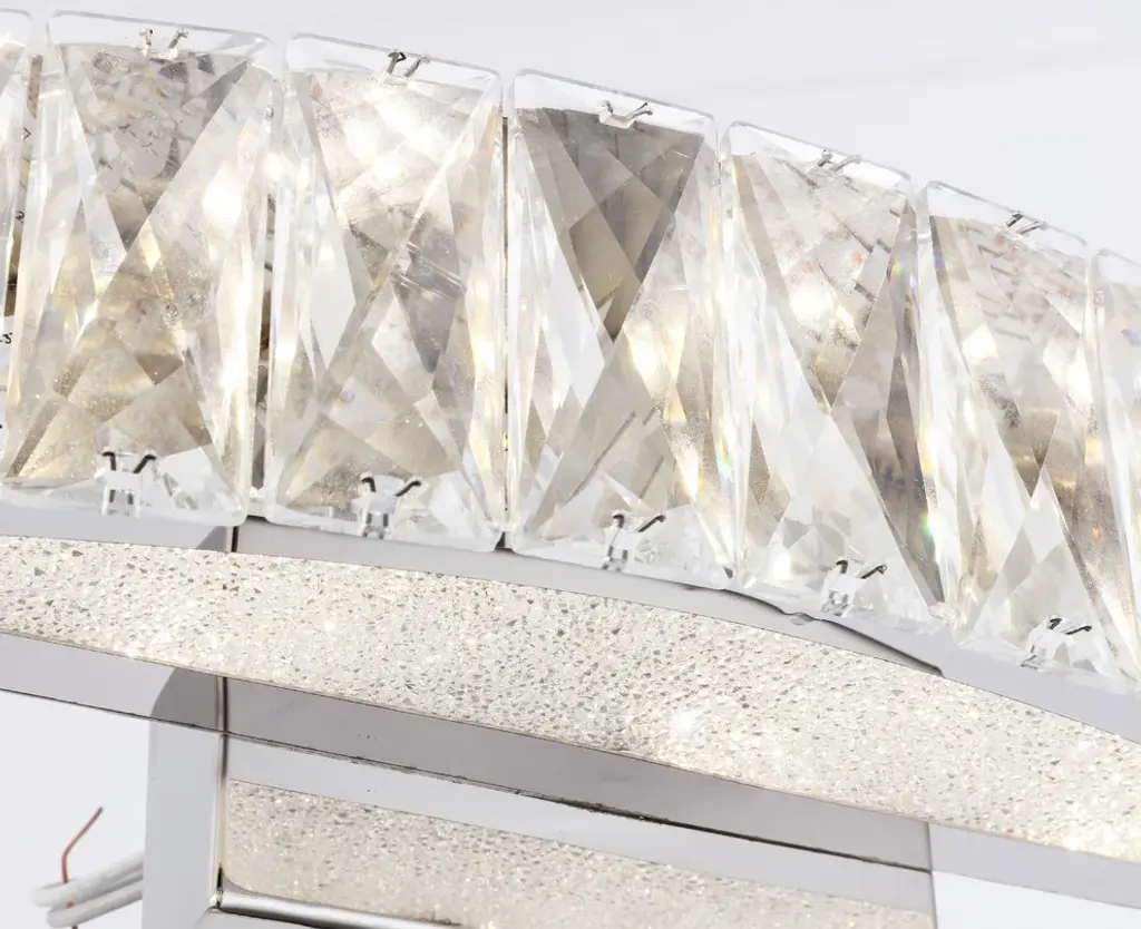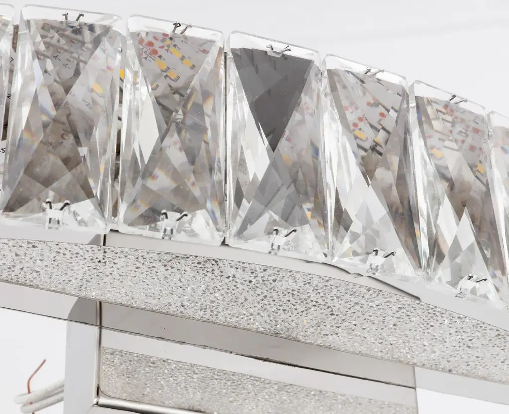 This LED wall sconce is in a chrome finish. The frame is made out of stainless steel with clear crystal band.Lighting Information:Bulb type: LEDMax wattage: 10Bulb(s) includedUL CertifiedUL certification type: Both