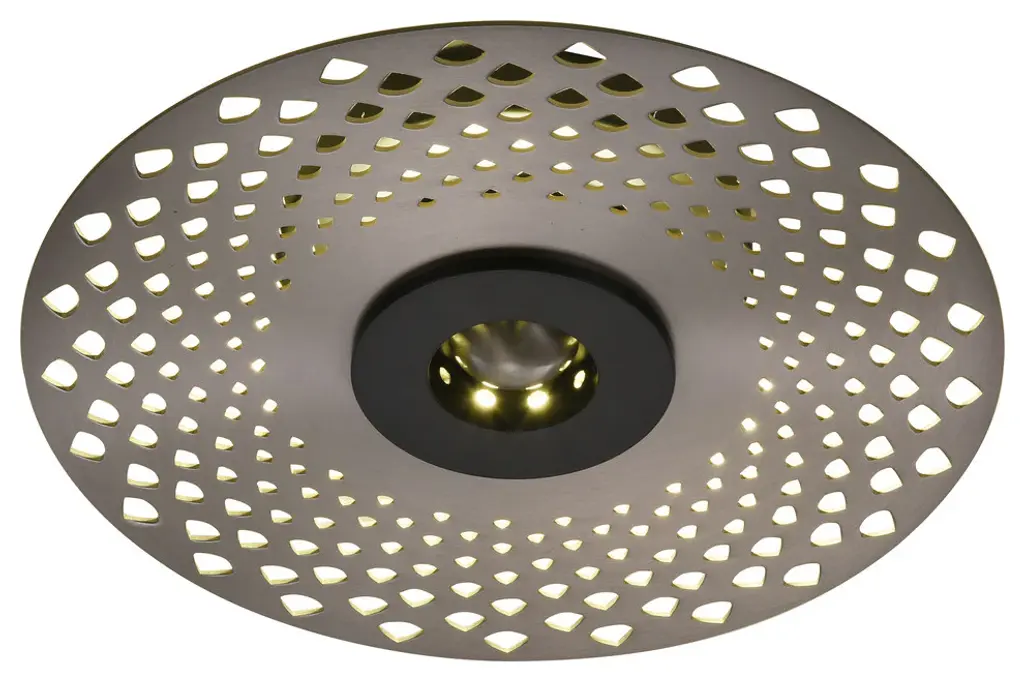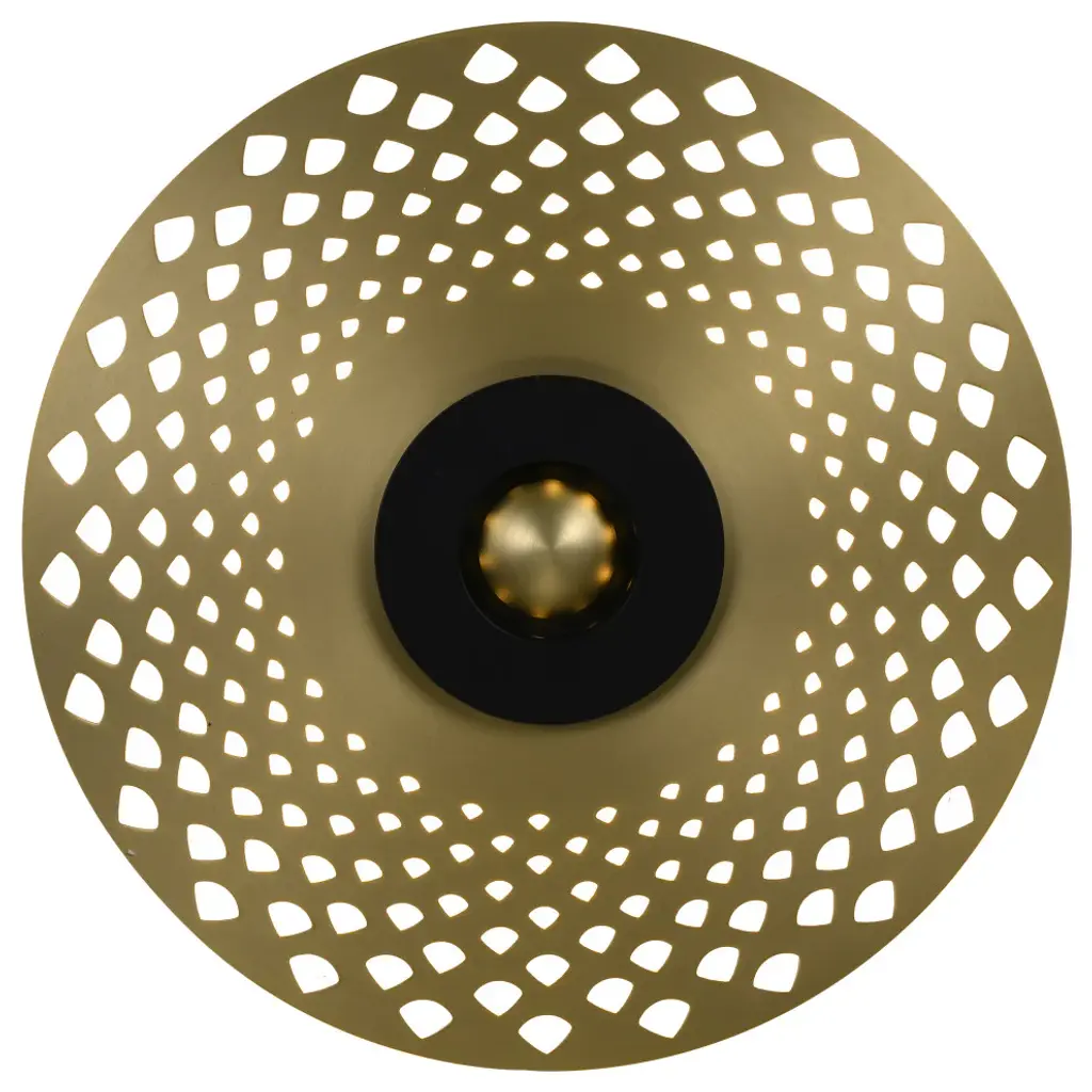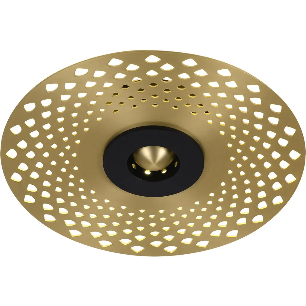 The unique LED wall sconce is in a gold finish. The frame is made out of iron and aluminum, and this LED wall sconce also can be used as a flush mount. Lighting Information:Number of bulbs: 1Bulb type: LEDMax wattage: 12Bulb(s) includedUL CertifiedUL Certification type: Both