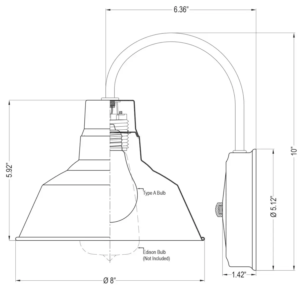 The Fovero RLM Wall Sconces are manufactured using durable cold rolled steel metal, which is then electrostatically sprayed, prior to being oven baked with durable UV Stabilized paint suitable for indoor and outdoor use. They come with 12"� of wire length to for easy installation. This Gooseneck Wall Mount Light Fixture features an 8in. Diameter Shade with a white internal reflective liner while extending 10in. away from the wall. The E26 lamp holder will take up to a 100W A19 Incandescent bulb, or any standard LED Bulb with an E26 Medium Base. Wall Sconces can be used in various applications, such as porches, garages, entryways, patios, cafes, bathroom, bedroom, kitchens, stairway, hotel, fireplace, balcony, hallway, home office, pool house, shed, barn, deck, headboard, among many other applications! Installing UL Listed security or outdoor lighting on your property or place of business is simple, cost effective and deters theft and crime in your area. The one-tool installation makes it extremely simple to easily install or upgrade interior/exterior light fixtures.