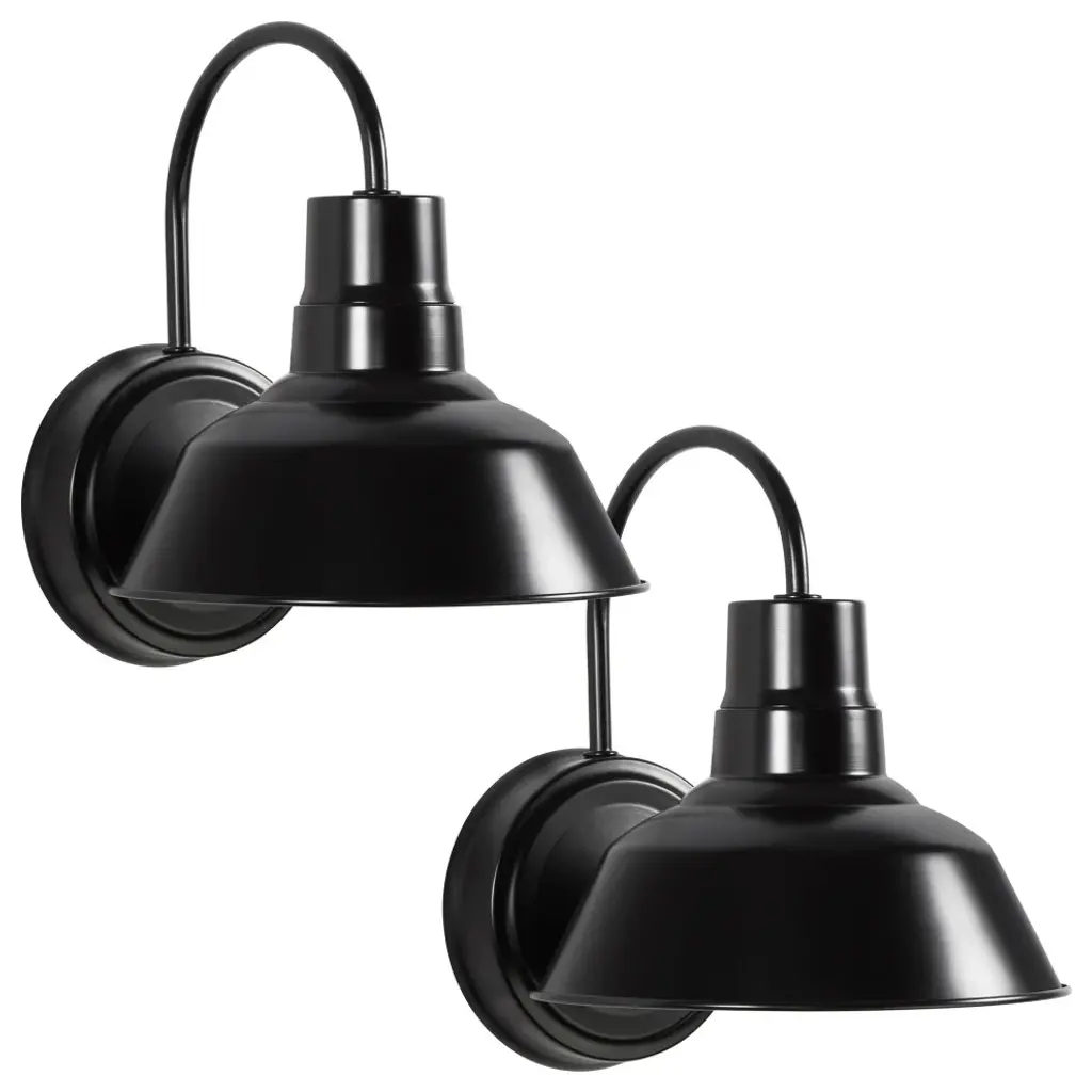 Led Wall Sconce Gooseneck Barn Light Fixture, Farmhouse Style, Wall Mount Light, Satin Black, 2-Pack