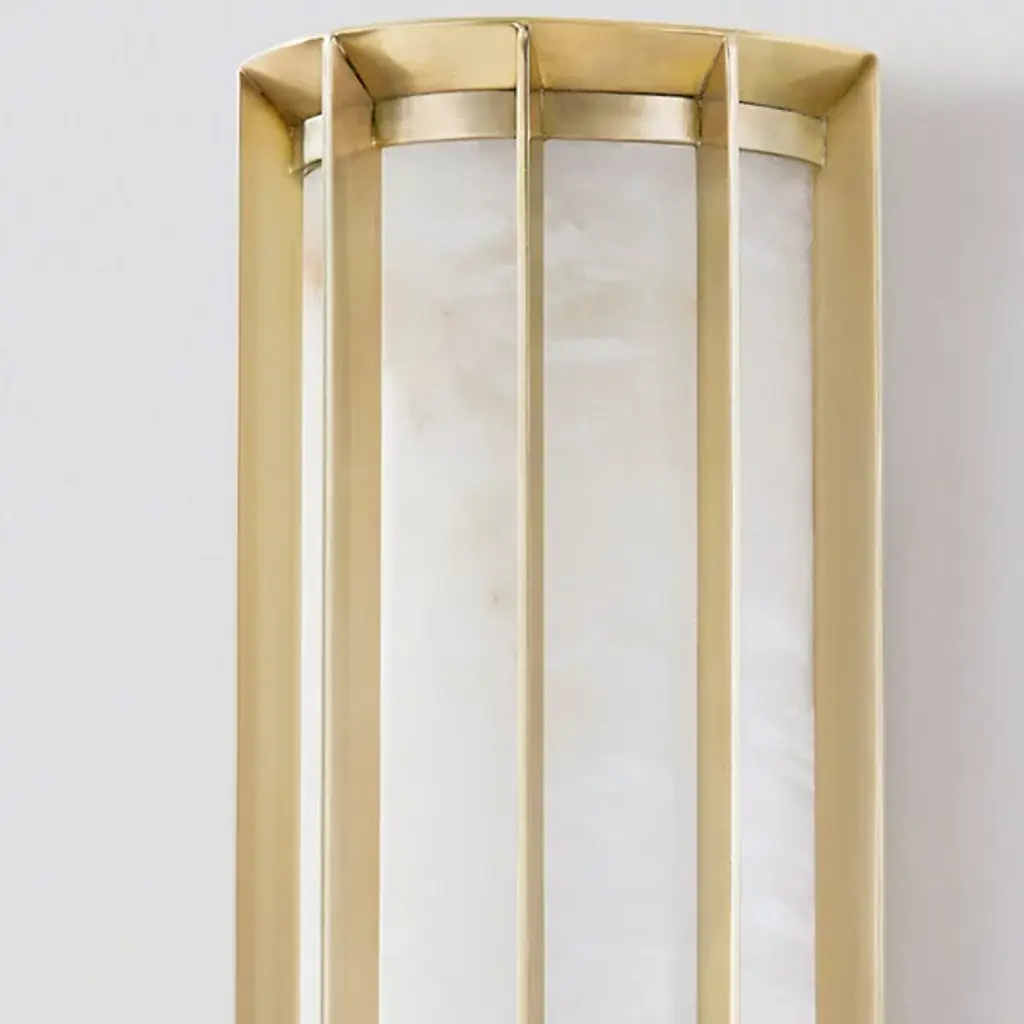 The Leda LED Wall Sconce from Corbett Lighting features a design that blends luxurious aesthetics with architectural finesse, featuring an alabaster diffuser enveloped in a vintage brass framework. The metalwork's clean, straight lines evoke a modern, column-like structure that seamlessly marries nostalgia with contemporary appeal. Enhanced by internal LED lighting, the alabaster diffuser bathes the entire fixture in a gentle, ambient glow, creating an exquisite ambiance that harmoniously merges elegance and modernity.