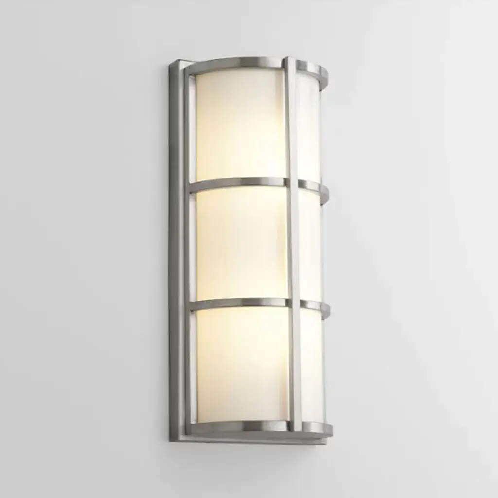 The Oxygen Lighting Leda Outdoor Wall Sconce features a stainless steel grid with a matte acrylic diffuser inside. Modern with an architectural twist, the illumination is diffused through the white acrylic, lighting your outdoor living space with a touch of trendy contemporary style.