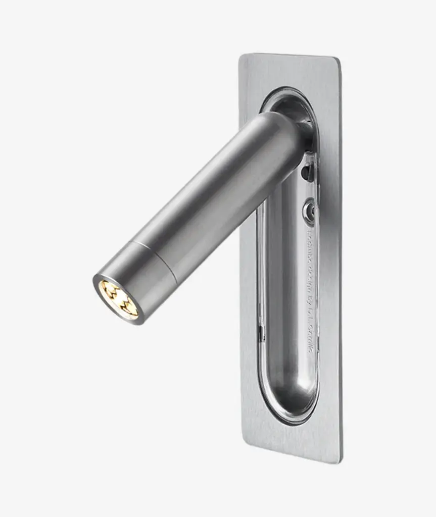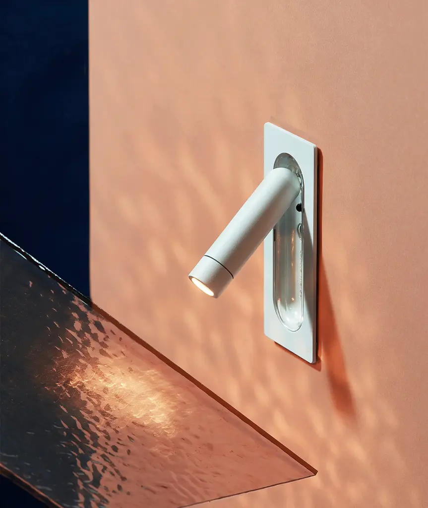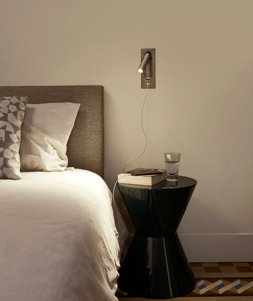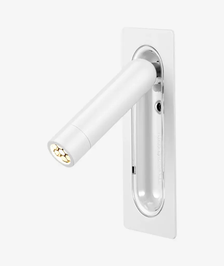 For almost ten years, the Ledtube has been one of the most iconic products in the Marset collection: a headboard lamp with a powerful, movable beam of light that’s an archetype due to its functionality and ability to blend with any space. Its ergonomic design beckons you to move it in any direction, up to 360º, and its use is very intuitive. When opened, it turns on automatically; when closed, it turns off and hides away in the wall, like camouflage. It’s so versatile it can be installed vertically or horizontally, adapting to the needs of your space. Available with USB port.