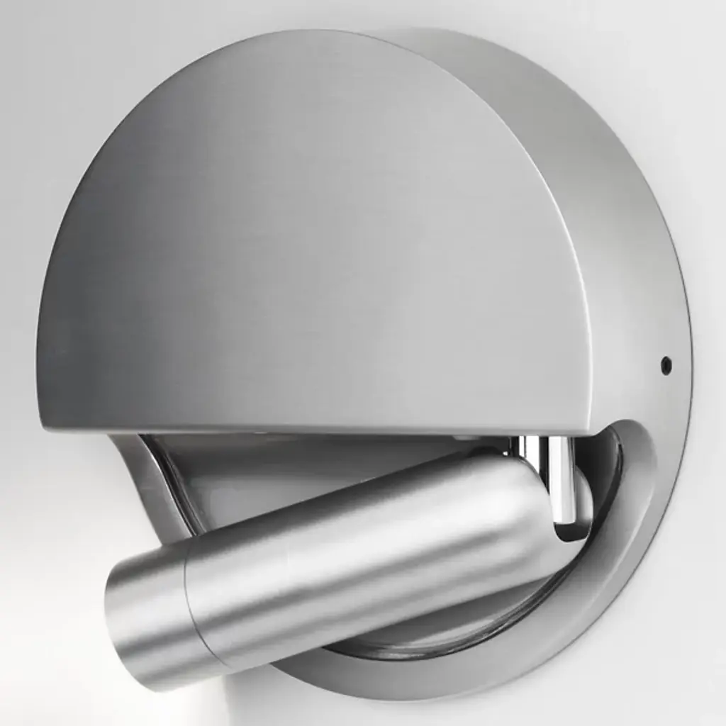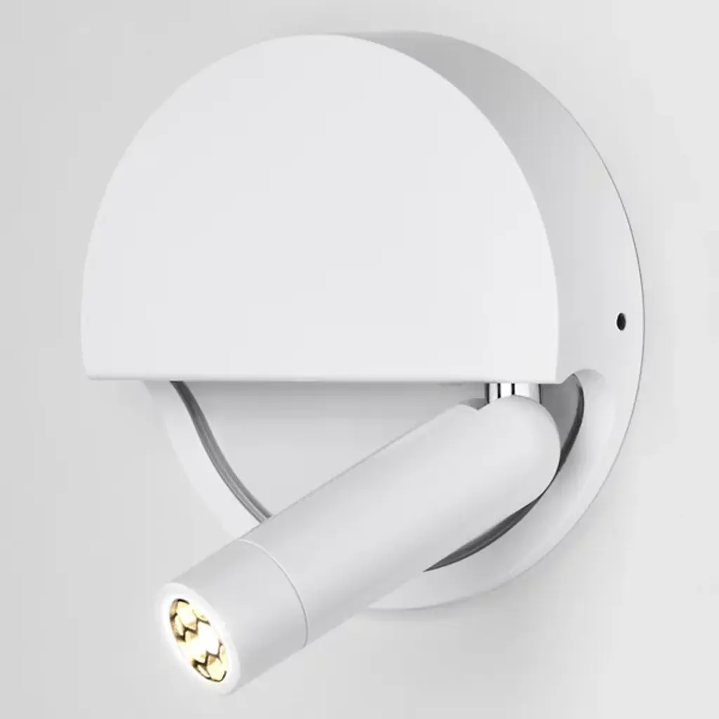 The Marset Ledtube Wall Sconce has all the sleek adjustability of the original Ledtube, but with a more decorative round base. The tubular light rotates up to 180 degrees, making it an excellent choice for an adjustable bedside reading light. Pull light away from the base to turn on, push back to turn off.