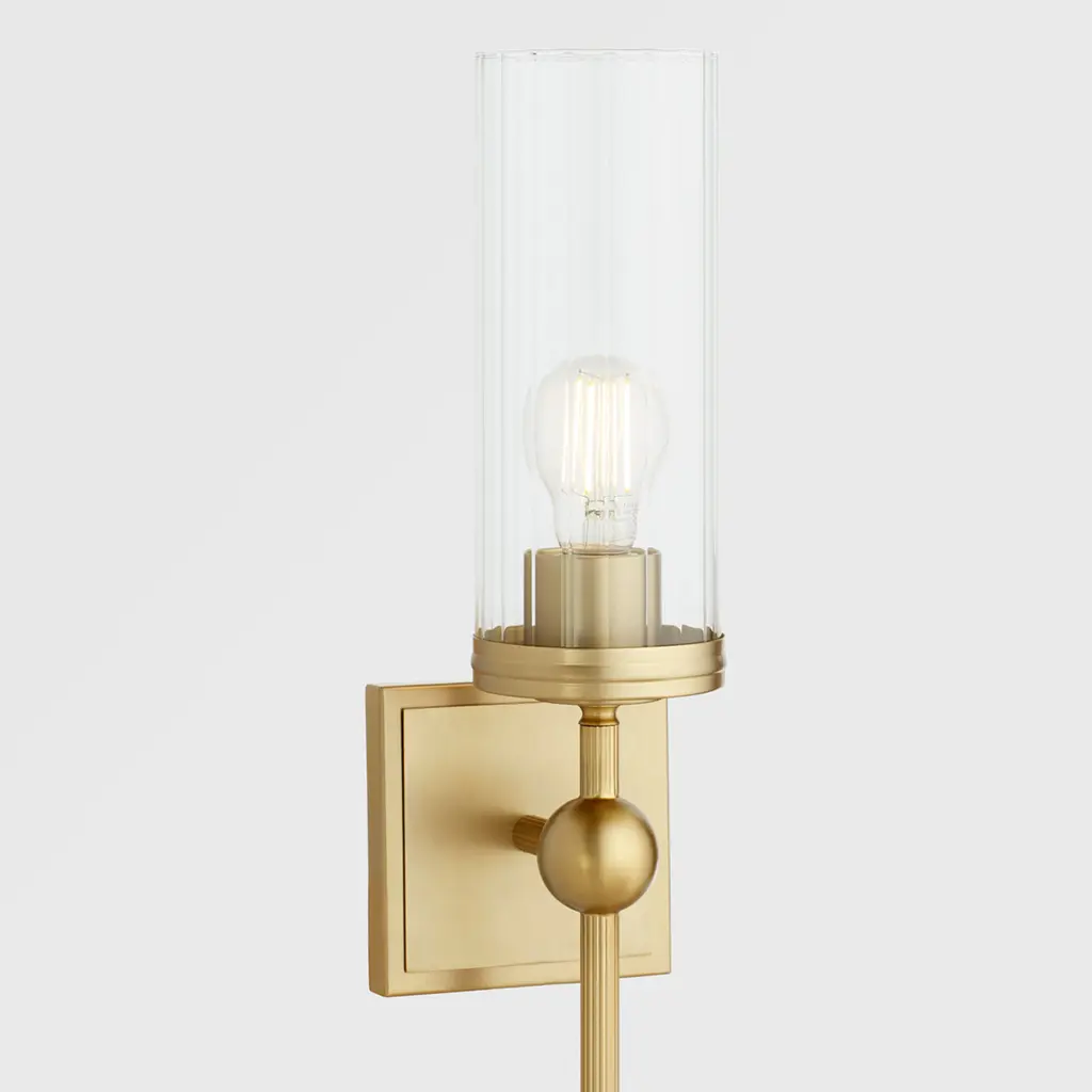 Nestled on four acres in the center of Kansas City, the Lee Boulevard home offers a feeling set apart from the city, which inspires Tamara Day to design this collection. A traditional design with a touch of contemporary through spherical details reflects the Lee Boulevard home's little slice of countryside amidst a sprawling citscape. Modern beaded elements and classic white linen shades offer tranisitional comfort with a luxurious impression. Two chandelier designs, linear pendants, wall mounts, and vanities come in options of matte black or aged brass finishes. Include the Lee Boulevard 1 light wall mount in your next home design.