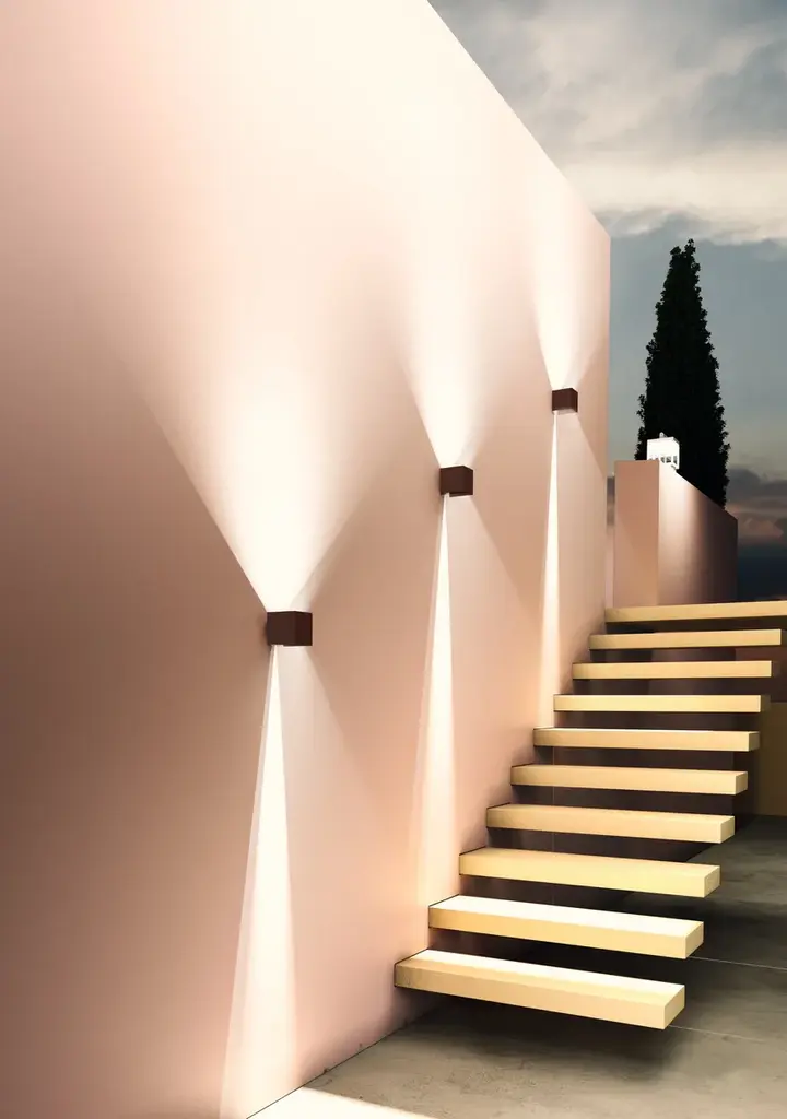 Lek is an outdoor decorative LED wall light perfect for lighting up warm summer evenings on terraces, gardens and chill-out areas. Available in matt white, matt black and corten finishes.Through its internal wings it allows to graduate the opening of the light beam. TECHNICAL DATALumens: 2.700K 480 lm - 3.000K 530 lm - 4.000K 542 lmCandlepower: 2.700K 125 cd - 3.000K 130 cd - 4.000K 140 cdRated power: 6,8WRated voltage: 220-240VAmp: 0,03Power factor: > 0,9Hertz: 50/60Hours of life: 30.000Maximum and minimum temperature: +40ºC -10ºCRa: >80IP: IP65REFERENCES4303: LEK WHITE EXTERIOR WALL LIGHT 6,8W. 2700K3983: LEK WHITE EXTERIOR WALL LIGHT 6,8W. 3000K3984: LEK WHITE EXTERIOR WALL LIGHT 6,8W. 4000K4304: LEK BLACK EXTERIOR WALL LIGHT 6,8W. 2700K3985: LEK BLACK EXTERIOR WALL LIGHT 6,8W. 3000K3986: LEK BLACK EXTERIOR WALL LIGHT 6,8W. 4000K4312: LEK CORTEN EXTERIOR WALL LIGHT 6,8W. 2700K3987: LEK CORTEN EXTERIOR WALL LIGHT 6,8W. 3000K3988: LEK CORTEN EXTERIOR WALL LIGHT 6,8W. 4000K